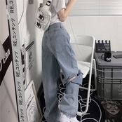 ハイウェストウェストジーンズ レディース夏服NEWルーズワイドレッグパンツ 大人ガーリー スウィート キュート カジュアル 夏物 ワイドパンツ ウエスト コーデ モノクロ Studio27542630041 | pLegLad Studios