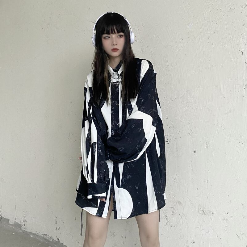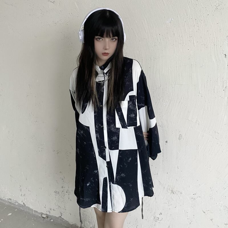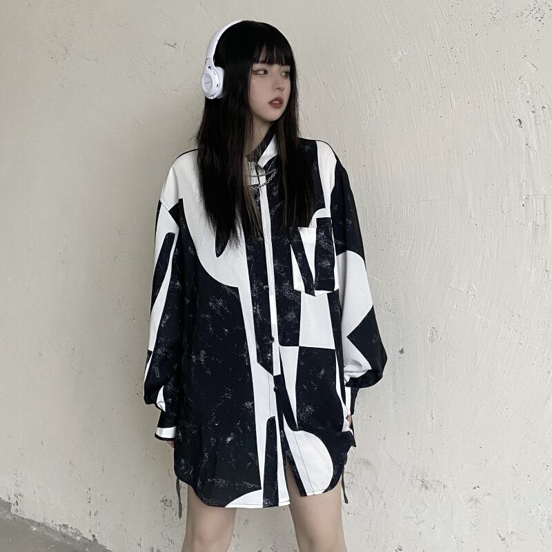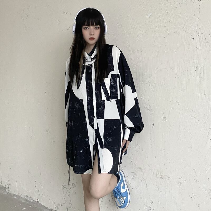 秋物ウィンター韓国ファッションNEWスタイルスタンダードカラープリントカジュアルルーズシャツ レディース ロング レトロ ストリート 原宿 オータム 冬物 長袖 Studios45996008755 | pLegLad Studios