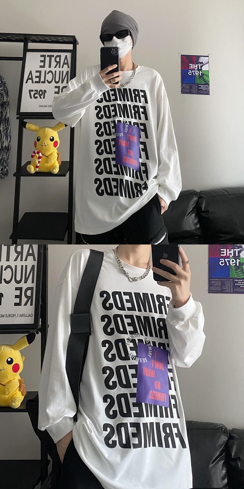 シャツ トップス レディース秋物韓国ファッションNEWスタイルプリントカジュアルルーズTシャツ ロング ストリート 原宿 オータム 長袖 Studios85003429277 | pLegLad Studios