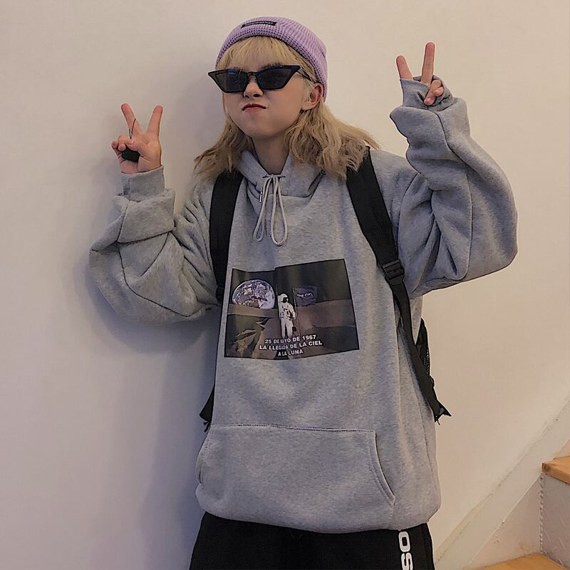 秋物ウィンター韓国ファッションNEWプリント柄カジュアルルーズフードプルオーバー セーター ジャケット レディース ストリート オータム 冬物 スタイル Studios31766101100 | pLegLad Studios