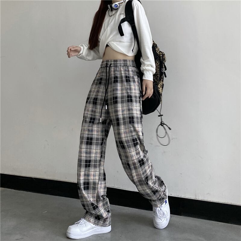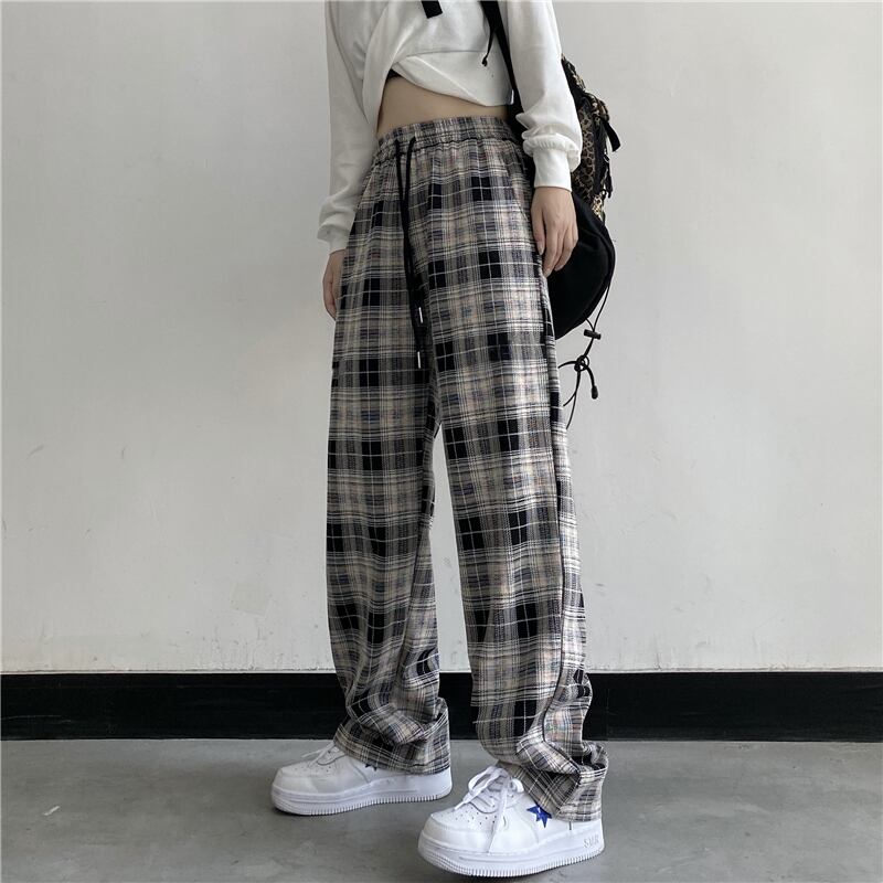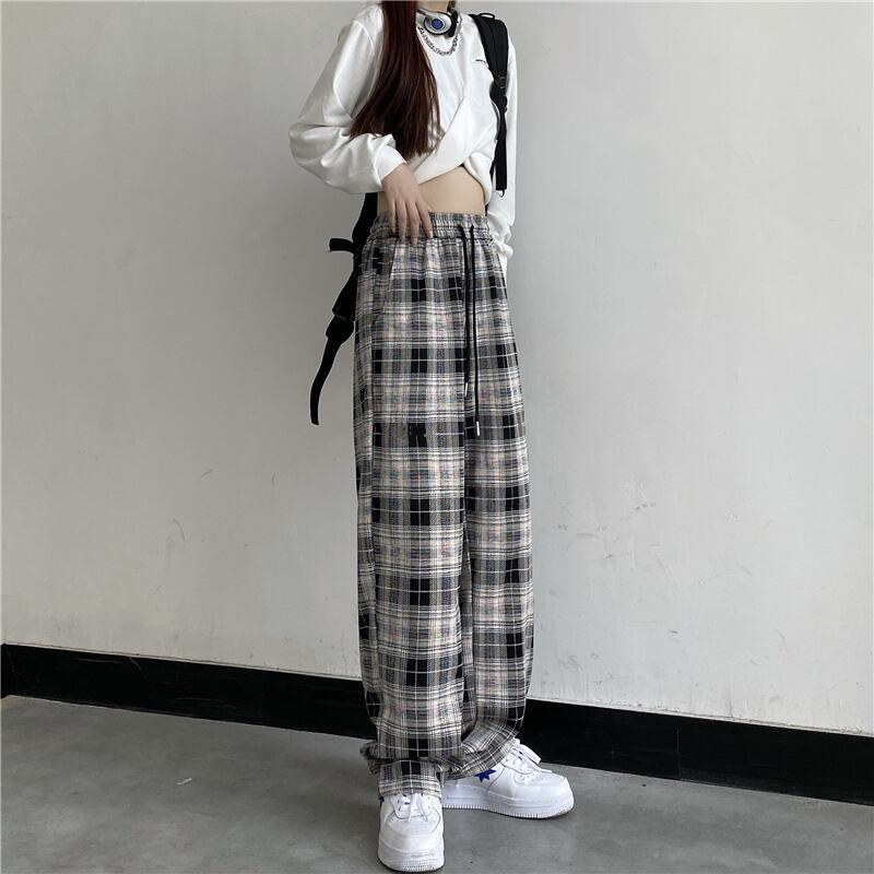 格子柄パンツ 秋物韓国ファッションNEWスタンダードワイルドルーズウェスト薄手 レトロ ストリート オータム ワイドレッグ ワイドパンツ ウエスト Studios73573298227 | pLegLad Studios