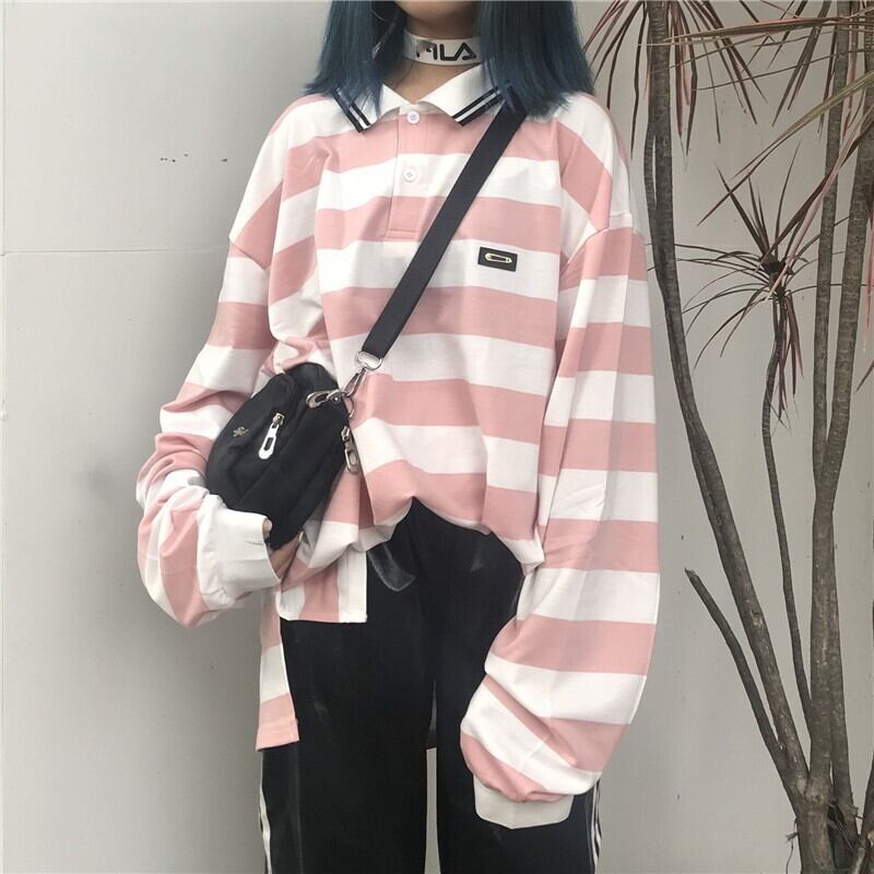 シャツ トップス レディース秋物韓国ファッションNEWスタイルスタンダードストライプルーズカジュアルTシャツ ロング レトロ オータム ボーイズ 長袖 Studios39868114069 | pLegLad Studios