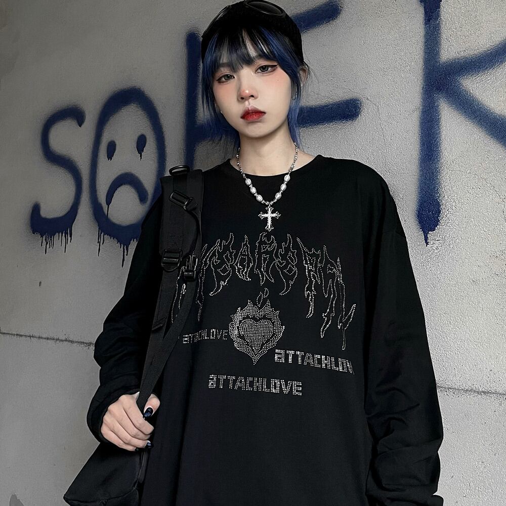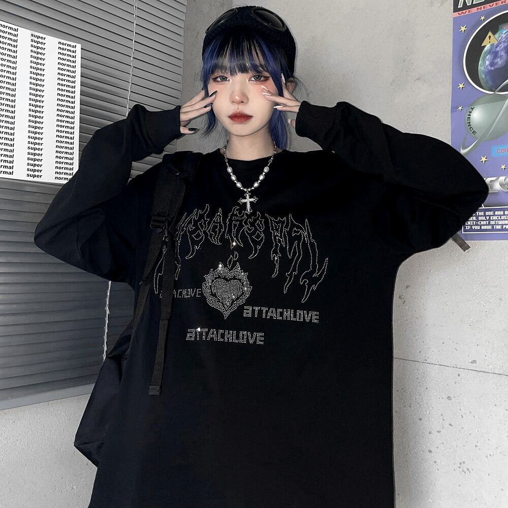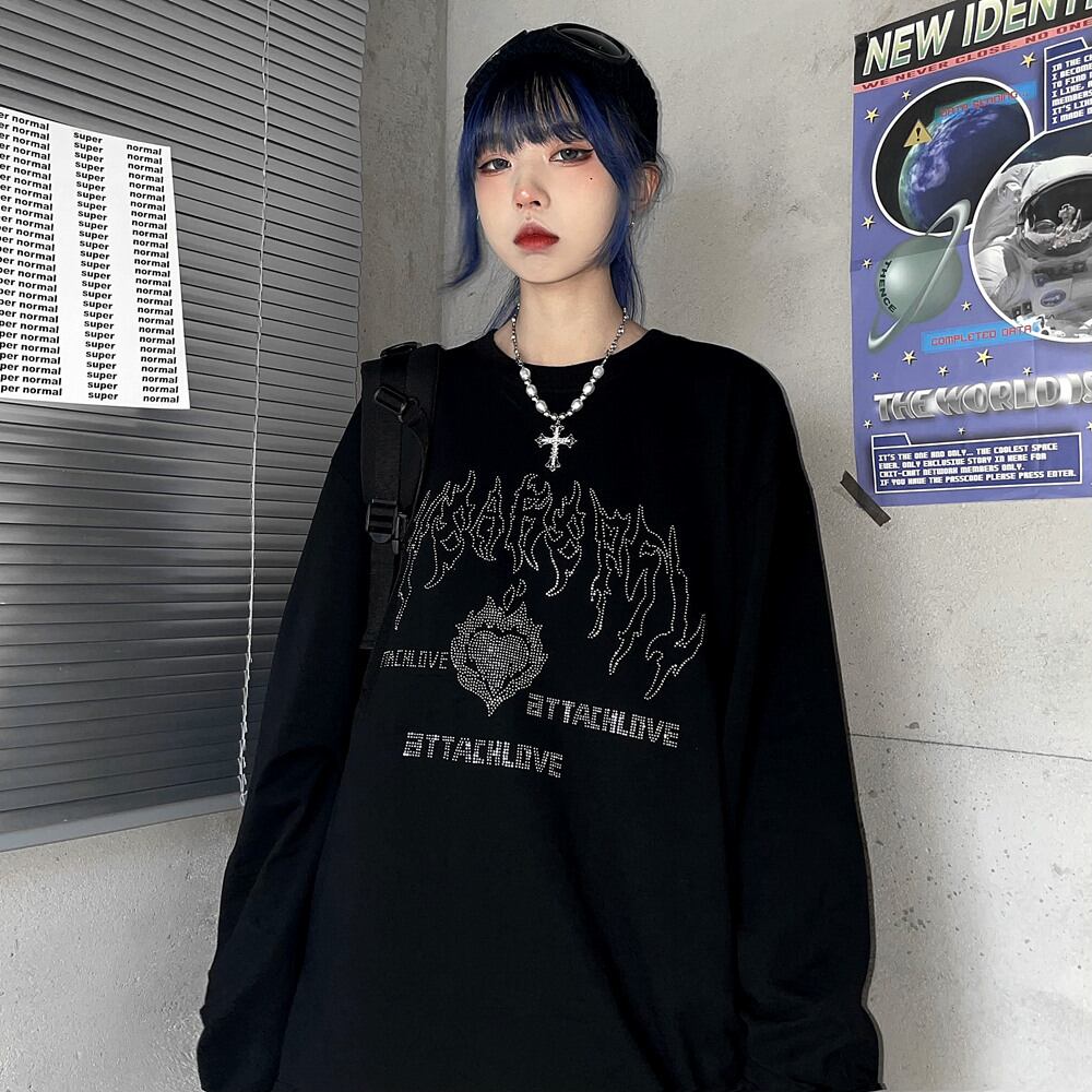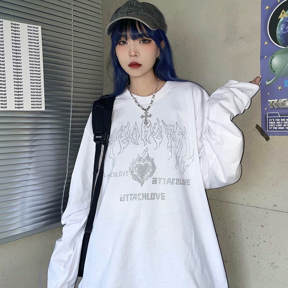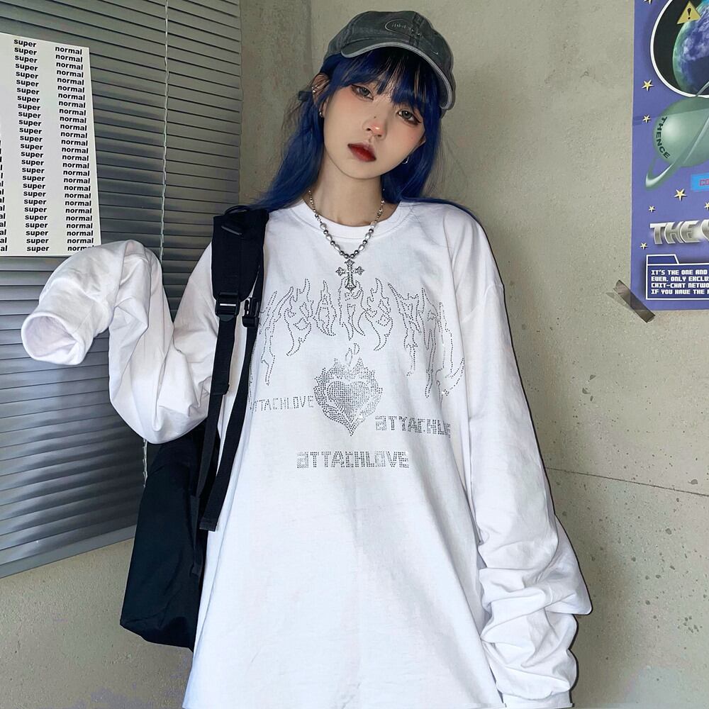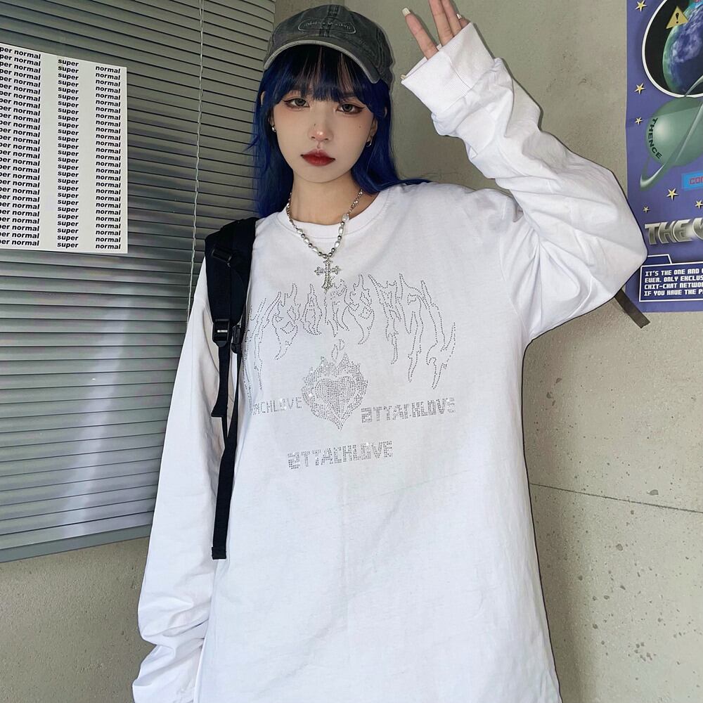 ルーズTシャツシャツ レディース秋物韓国ファッションNEWラウンドネック ロング オータム Oネック スタイル 長袖 コーデ モノクロ Studio26824997169 | pLegLad Studios