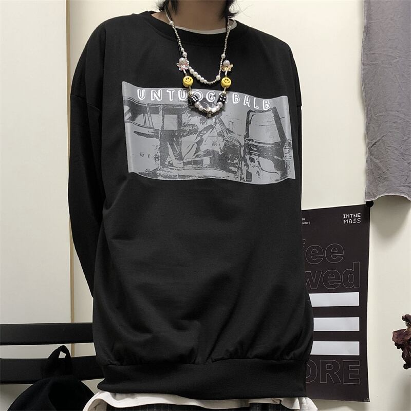 薄手プルオーバー セーター レディース韓国ファッションNEWプリント柄ルーズラウンドネックジャケット 原宿 Oネック スタイル コーデ モノクロ Studio68951767648 | pLegLad Studios