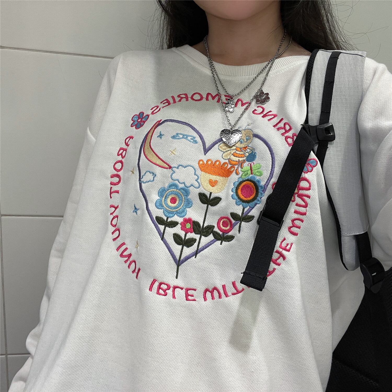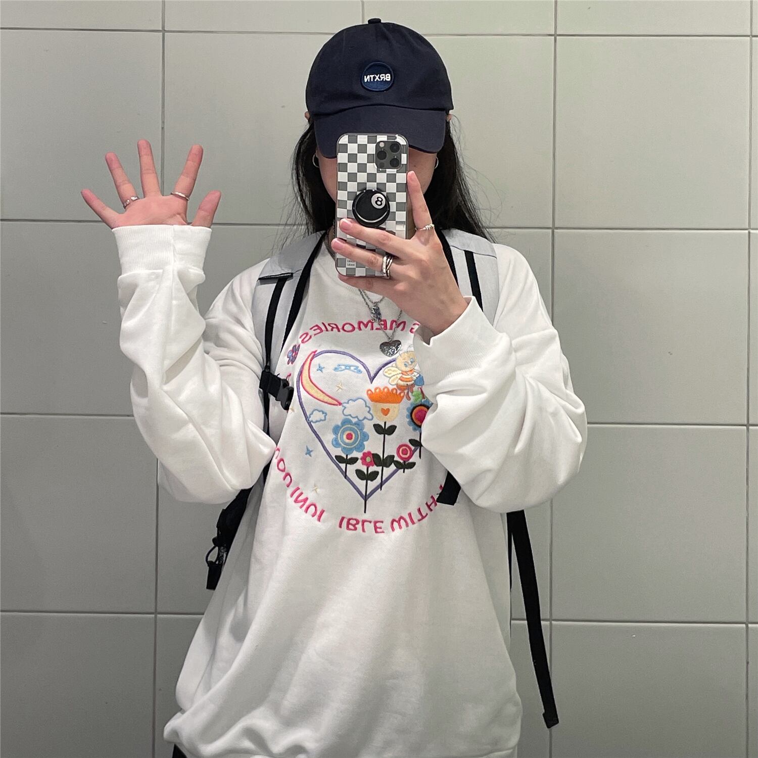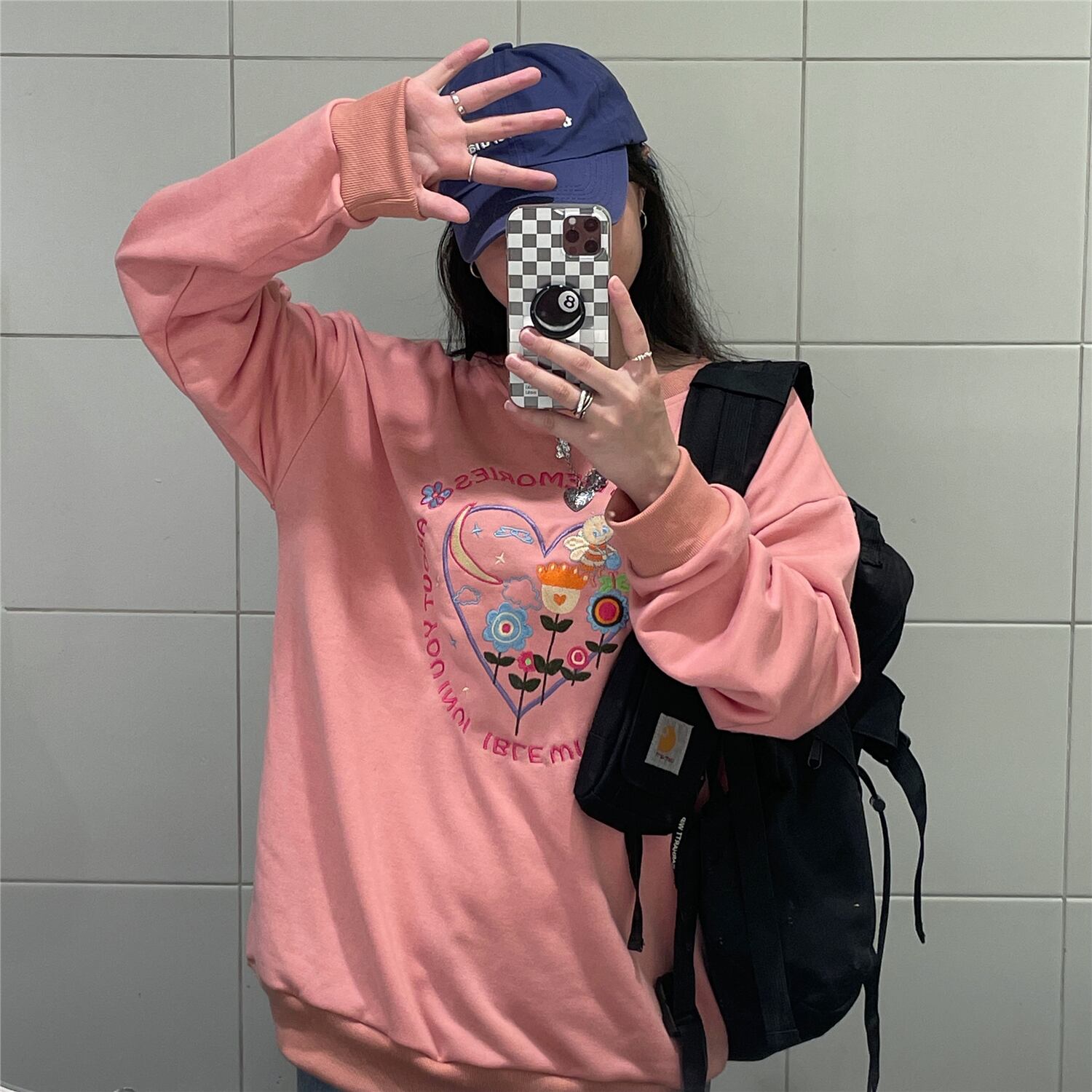 秋物ウィンター韓国ファッションNEWスタイル刺繍プルオーバー ラウンドネックルーズセーター レディース ロング ストリート 原宿 オータム 冬物 Oネック 長袖 Studios16235714160 | pLegLad Studios