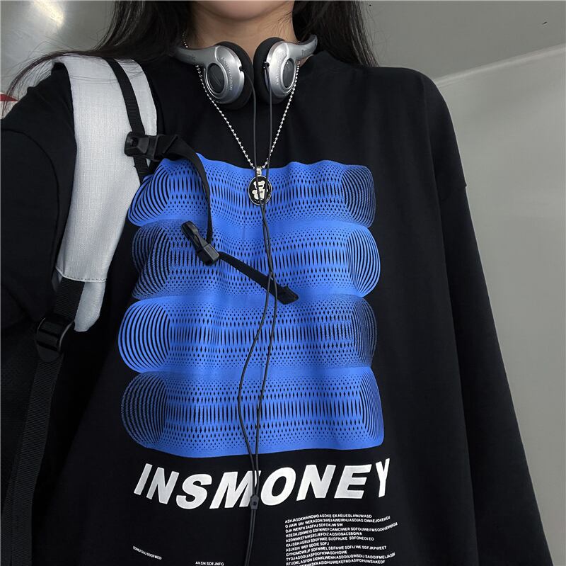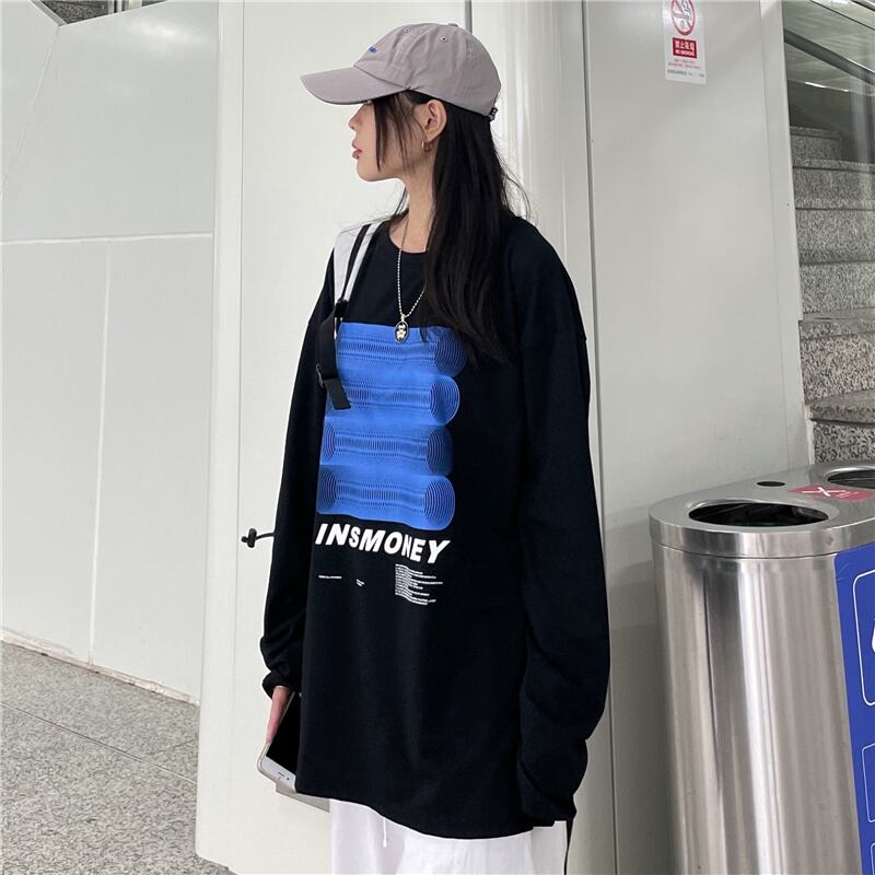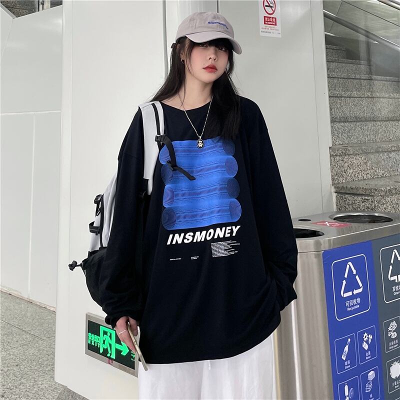 ラウンドネックTシャツレディース夏服韓国ファッションNEWスタンダードプリントトップス ロング レトロ ストリート 夏物 Oネック スタイル 長袖 コーデ モノクロ Studio92936901117 | pLegLad Studios