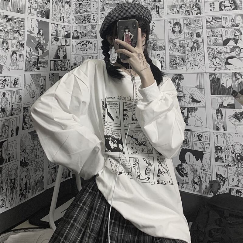 薄手セーター レディース秋物韓国ファッションNEWスタンダードプリントルーズラウンドネックトップス ロング レトロ オータム Oネック スタイル 長袖 Studios53321613042 | pLegLad Studios