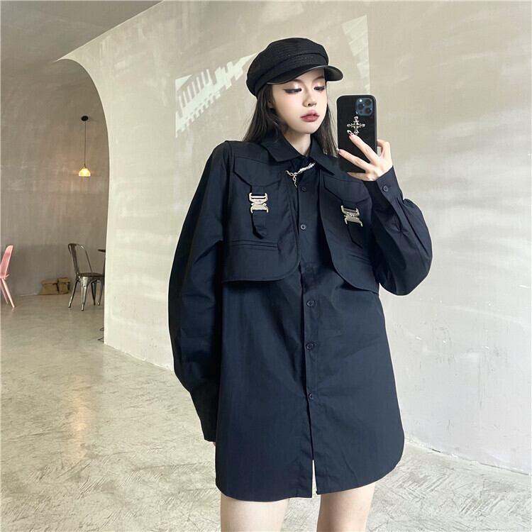 シャツ トップス レディース秋物韓国ファッションNEWスタンダードルーズショートショール ロング レトロ オータム スタイル 長袖 Studios78749708819 | pLegLad Studios