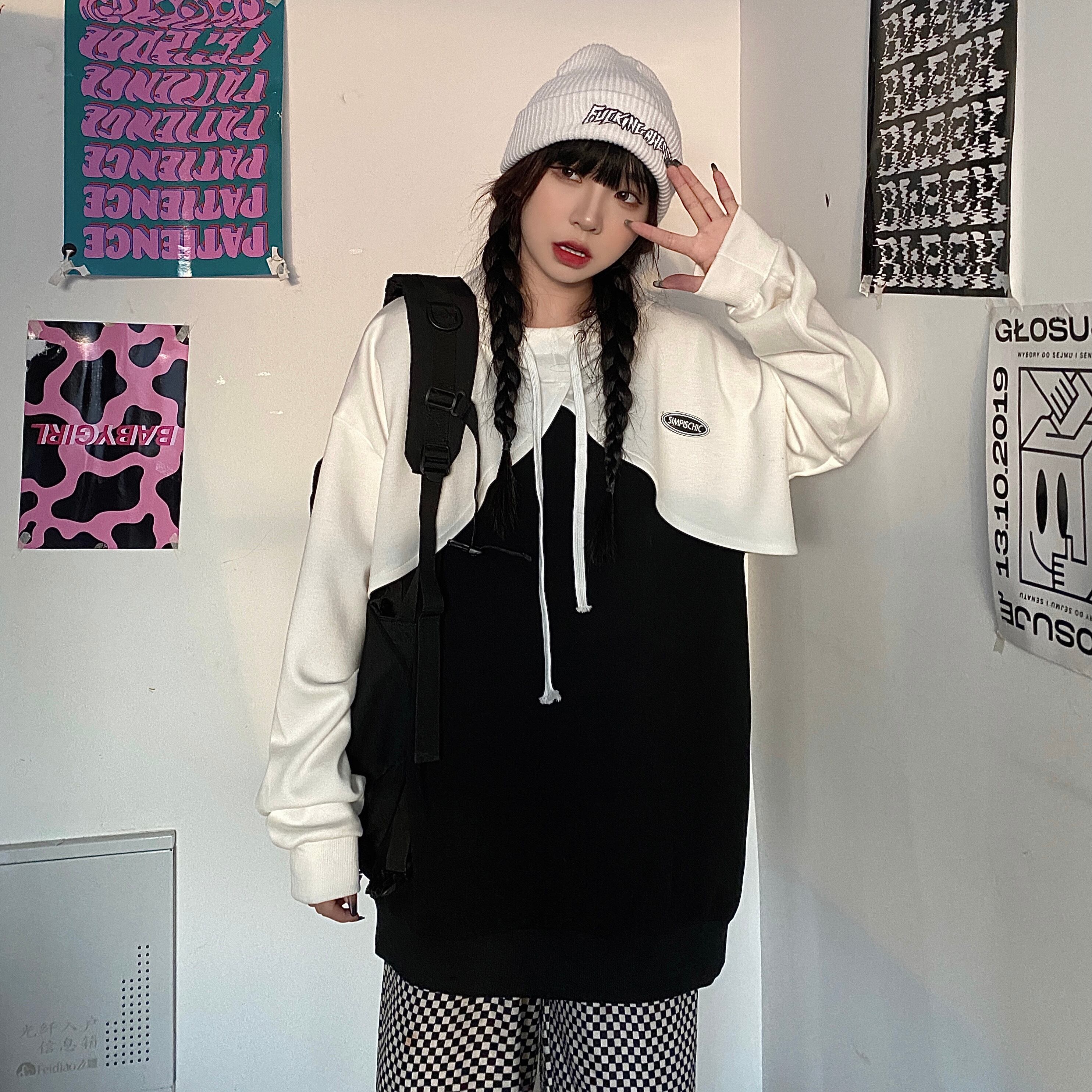 色:白いベスト,黒のベスト,白いガウン,黒いオーバーオール