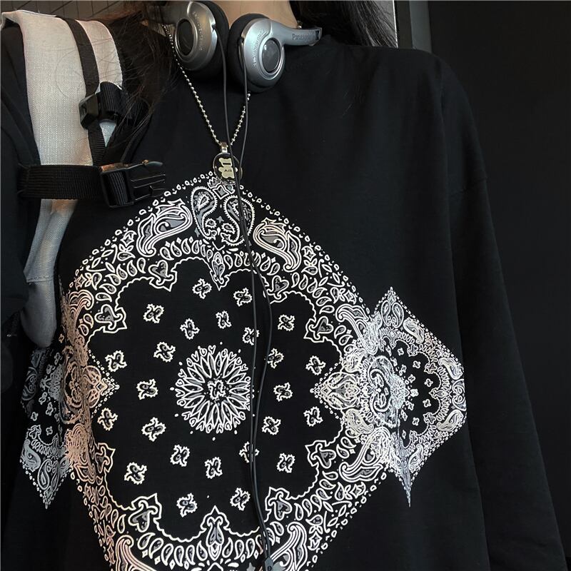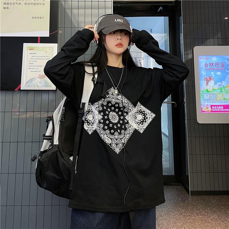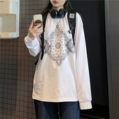レディースゆったりシャツ トップス 秋物韓国ファッションNEWスタイルFlowerデザイン プリント柄ルーズラウンドネック長袖スリーブTシャツ ロング ストリート 原宿 オータム Oネック フラワーデザイン Studios4678997743 | pLegLad Studios