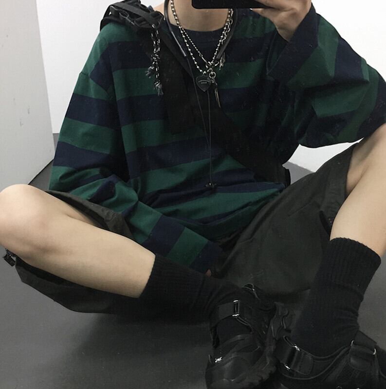 ゆったりシャツ トップス 秋物ウィンター韓国ファッションNEWスタイルスタンダードカラーストライプカジュアルルーズTシャツ ロング レトロ 原宿 オータム 冬物 長袖 Studios66994591496 | pLegLad Studios
