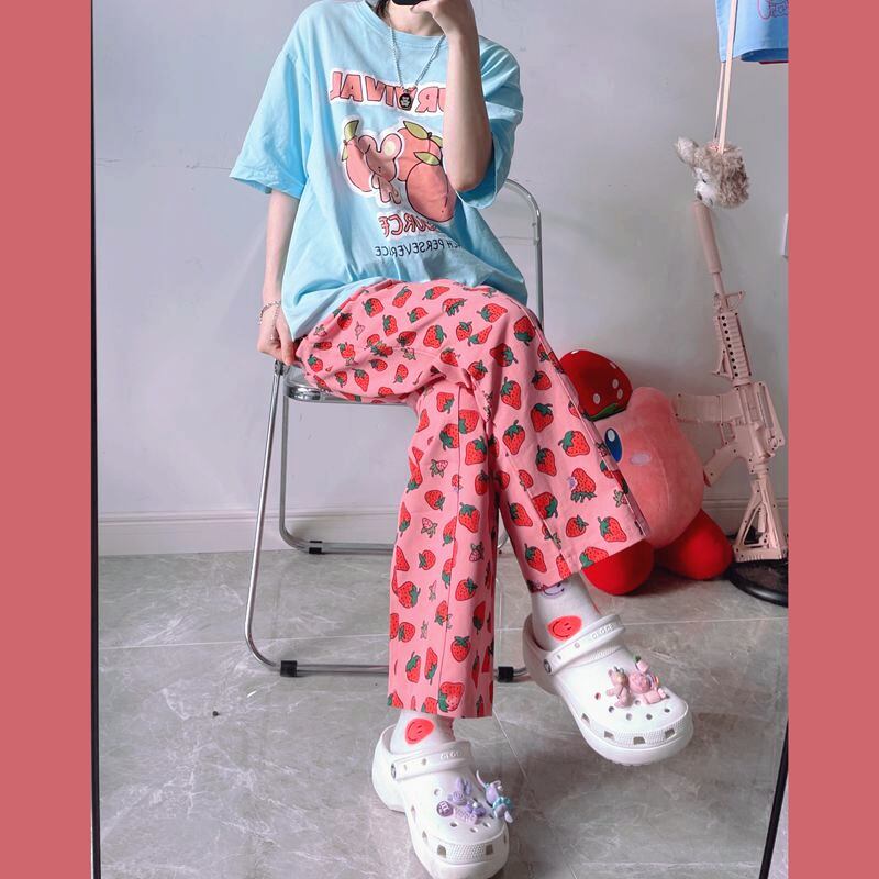 パンツ レディース夏服韓国ファッションNEWスタンダードプリント柄ルーズハイウェストウェスト薄手ワイドレッグ レトロ ストリート 夏物 ワイドパンツ スタイル ウエスト Studios87445868597 | pLegLad Studios