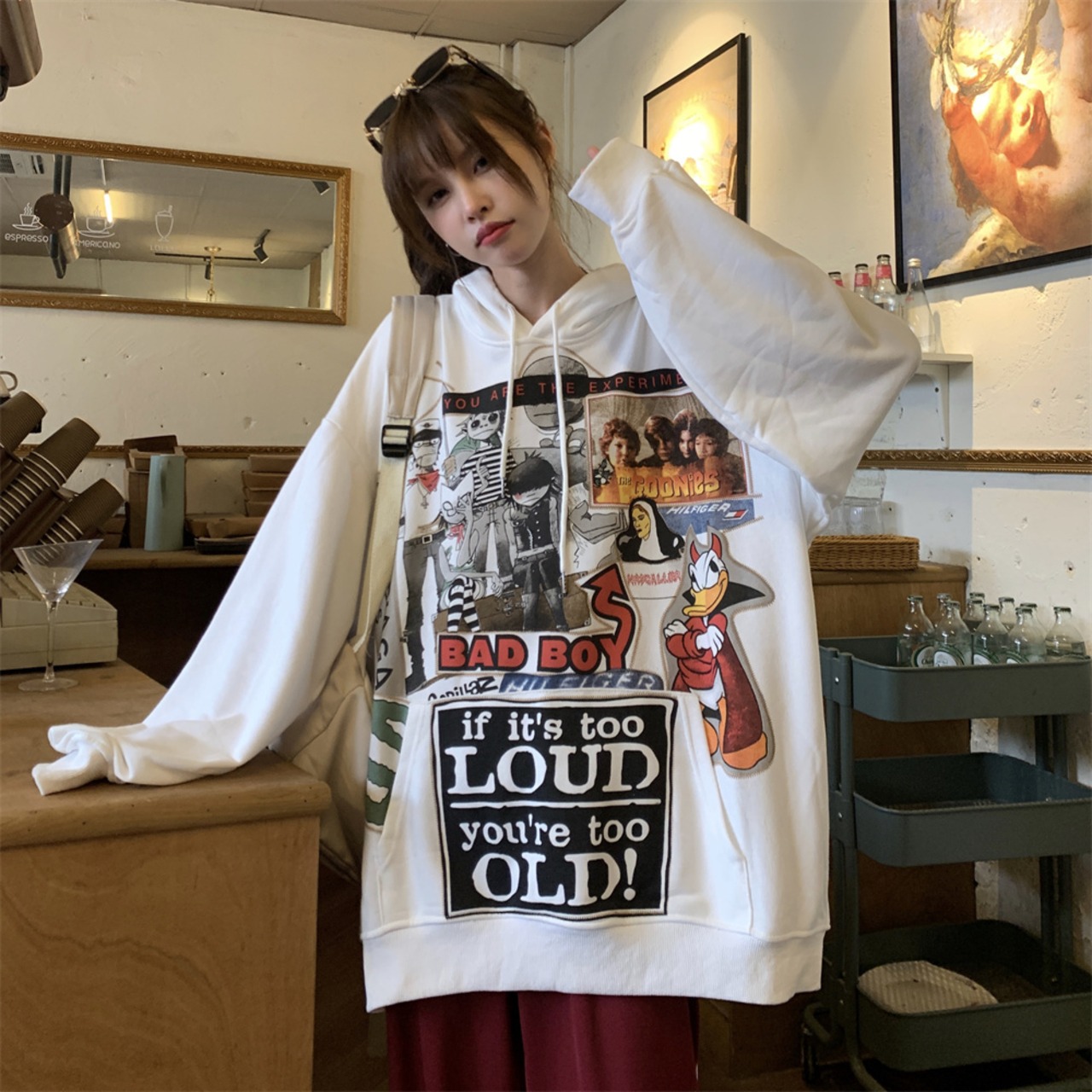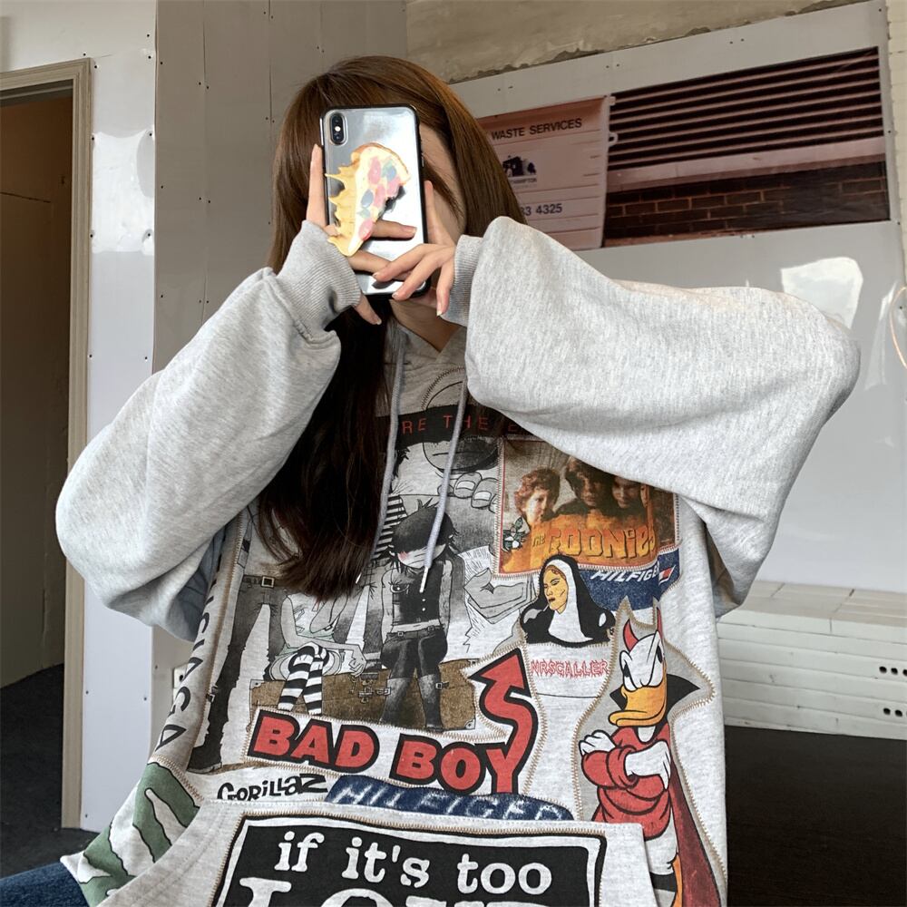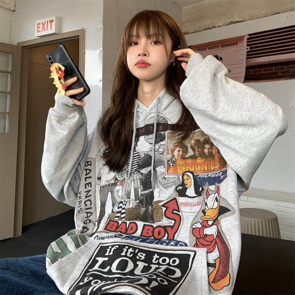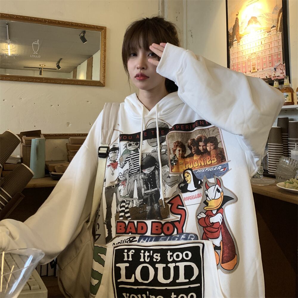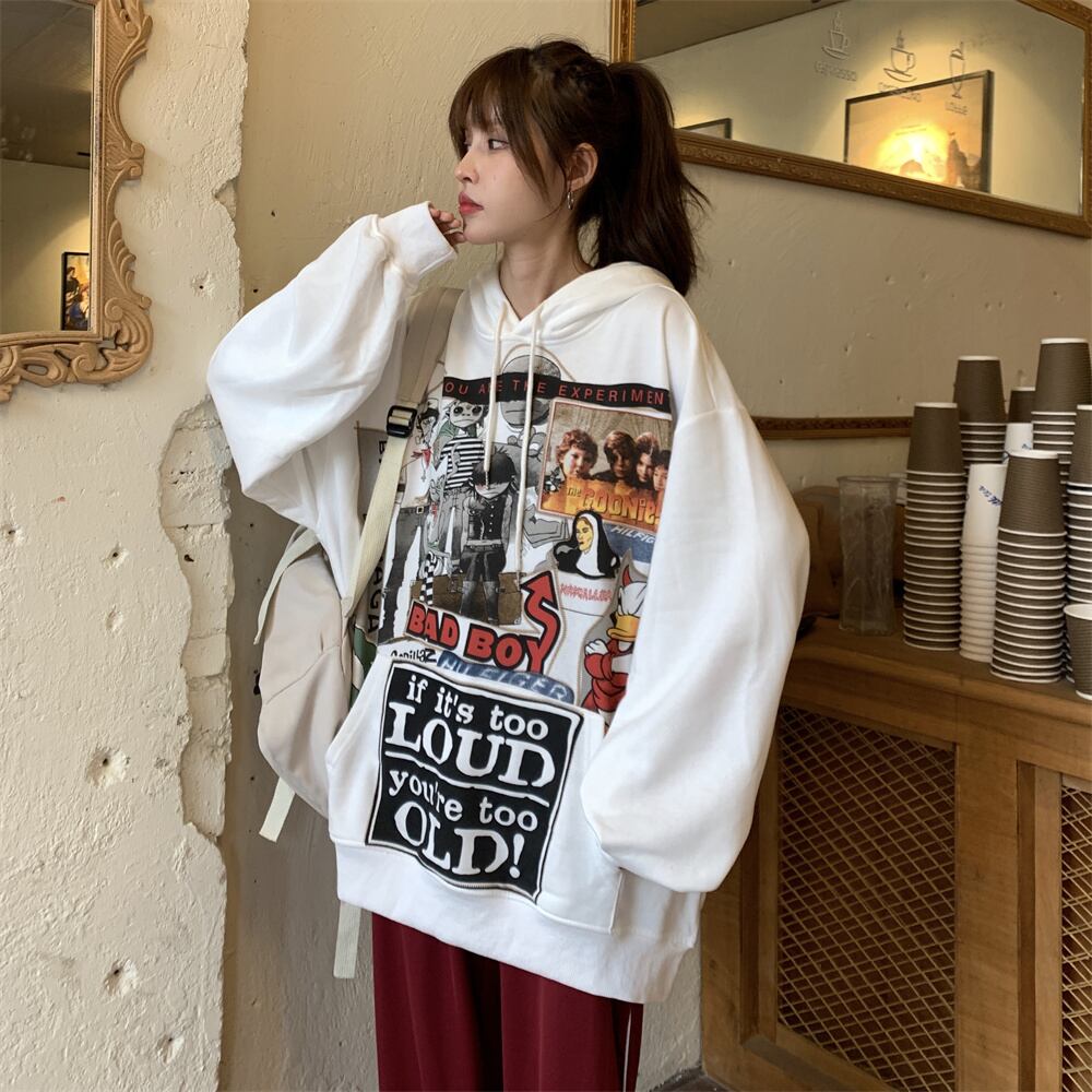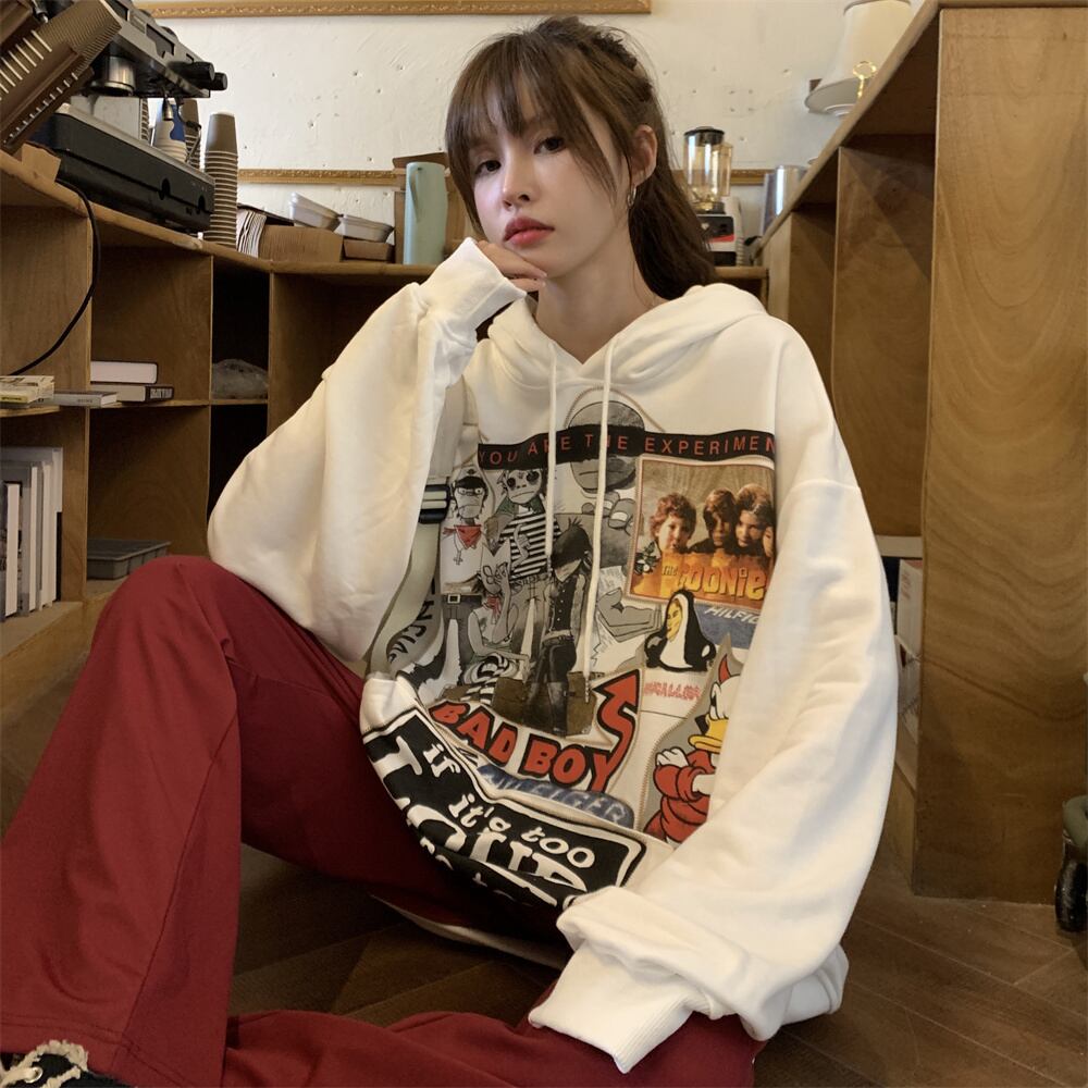 秋物ウィンター韓国ファッションNEWスタイルスタンダードプリントカジュアルルーズプルオーバー フードセーター ジャケット レディース レトロ 原宿 オータム 冬物 Studios90478119899 | pLegLad Studios
