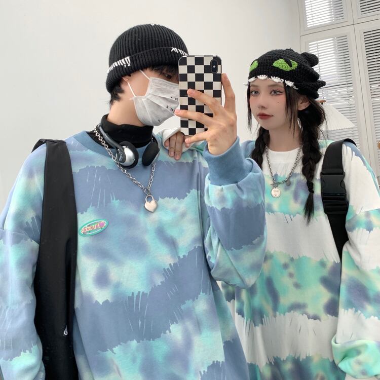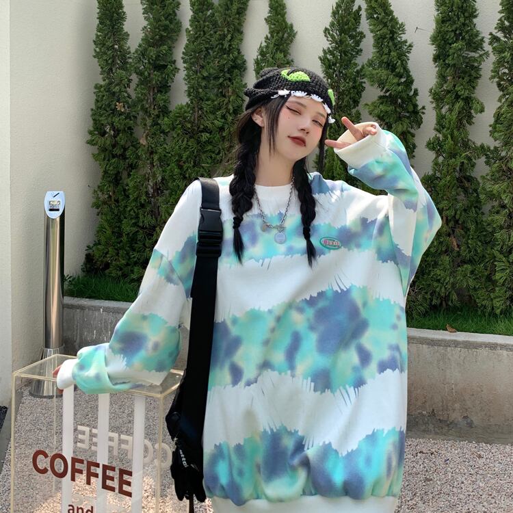 ラウンドネックセーター レディース秋物韓国ファッションNEWルーズトップス ロング オータム Oネック スタイル 長袖 コーデ モノクロ Studio37067102748 | pLegLad Studios