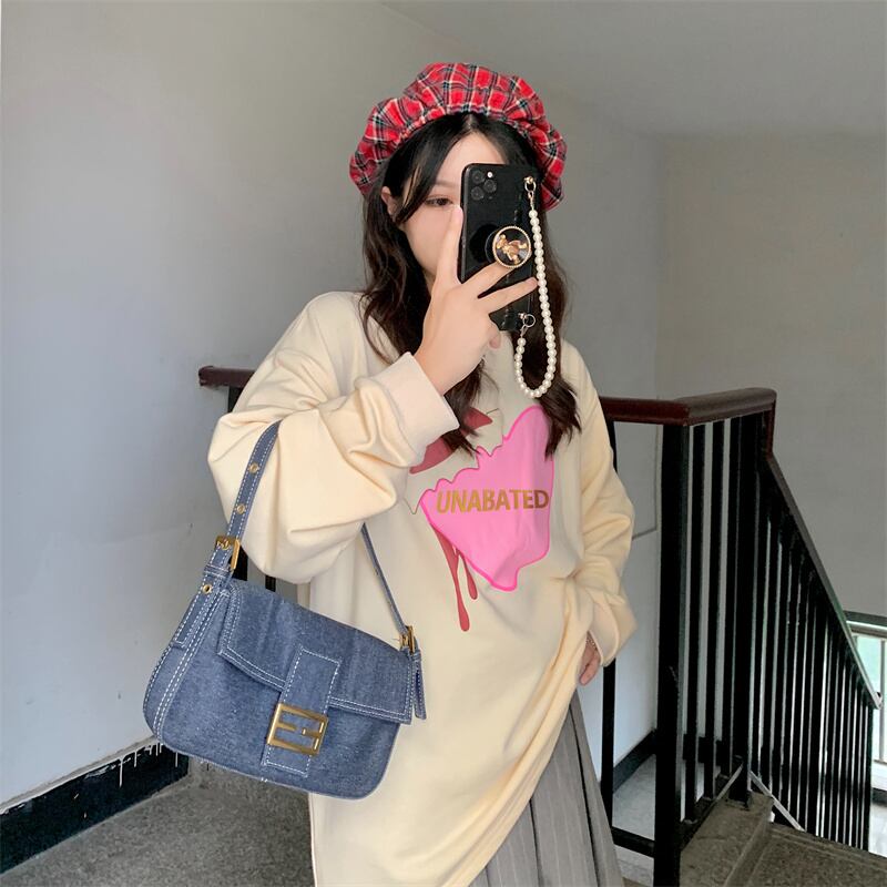 ラウンドネックセーター レディース秋物韓国ファッションNEWルーズプルオーバー トップス ロング オータム Oネック スタイル 長袖 コーデ モノクロ Studio48830061069 | pLegLad Studios