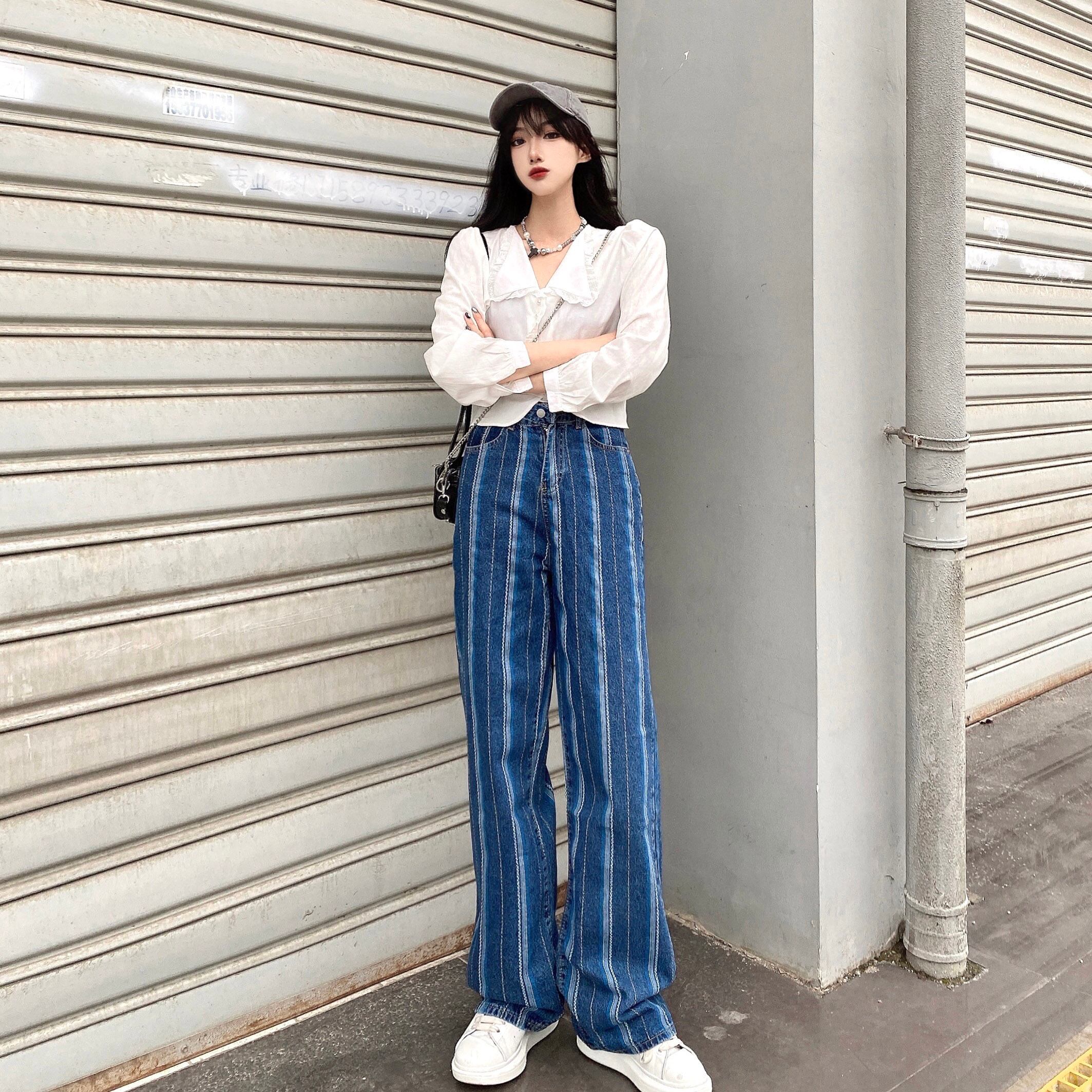 スタンダードストライプジーンズ 秋物韓国ファッションNEWルーズハイウェストウェスト薄手ワイドレッグカジュアルパンツ レトロ オータム ワイドパンツ スタイル ウエスト Studios84075303949 | pLegLad Studios