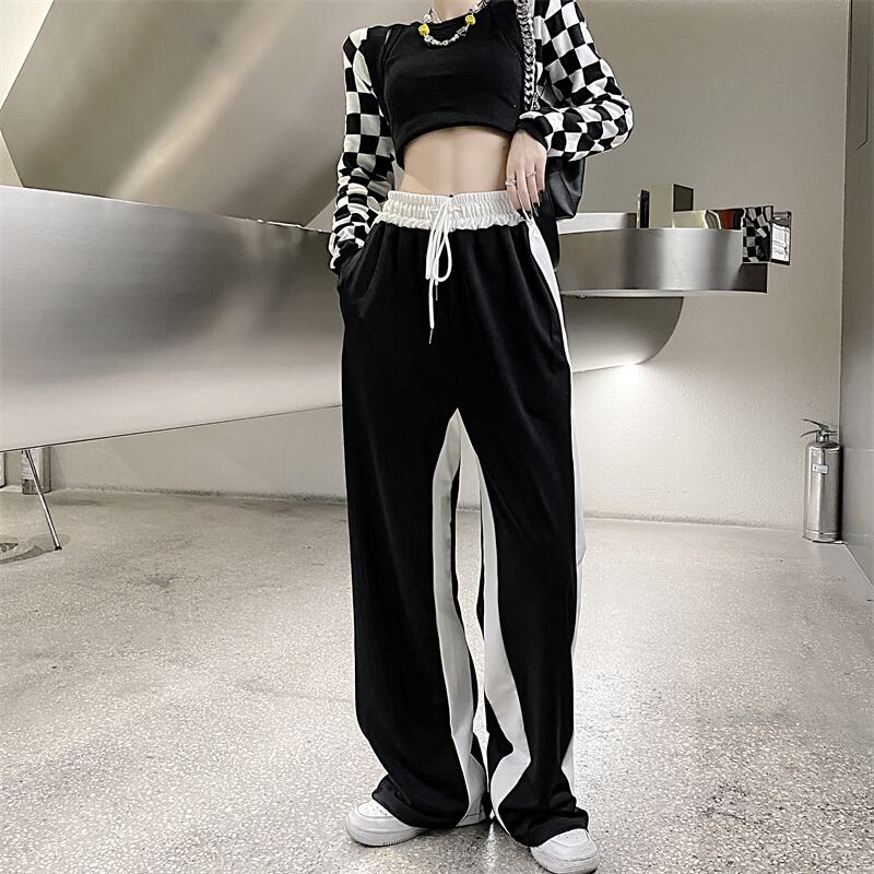 カラーパンツ 秋物韓国ファッションスタイルワイドレッグハイウェストウェストルーズ オータム ワイドパンツ ステッチ ボーイズ ウエスト コーデ モノクロ Studio17174857525 | pLegLad Studios
