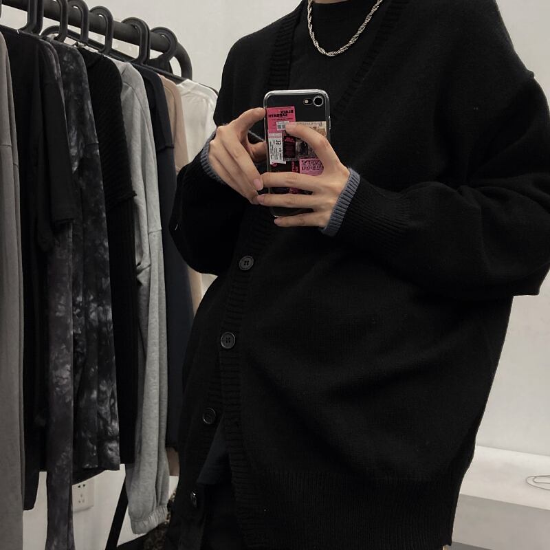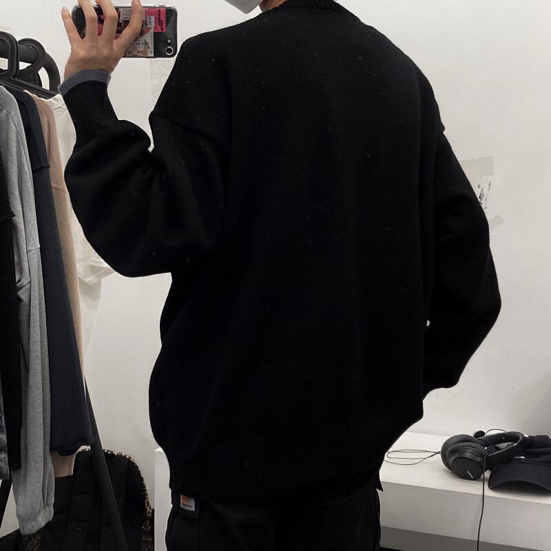 Vネックカーディガンニットセーター レディース秋物韓国ファッションNEWカラールーズジャケット オータム ピュア スタイル コーデ モノクロ Studio29888340830 | pLegLad Studios