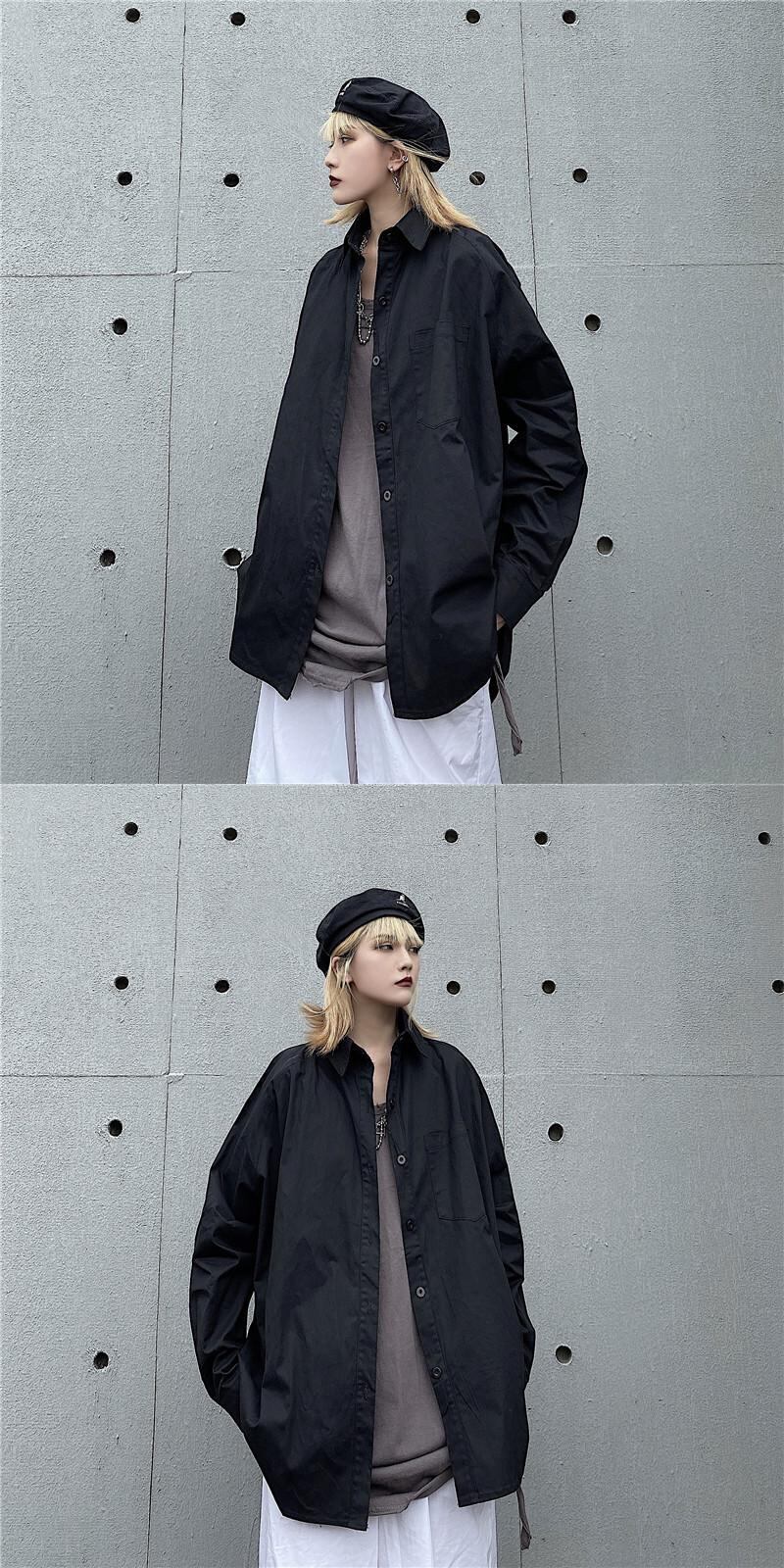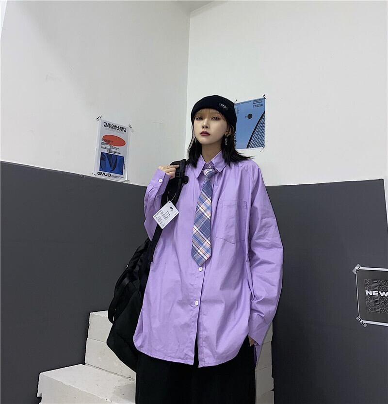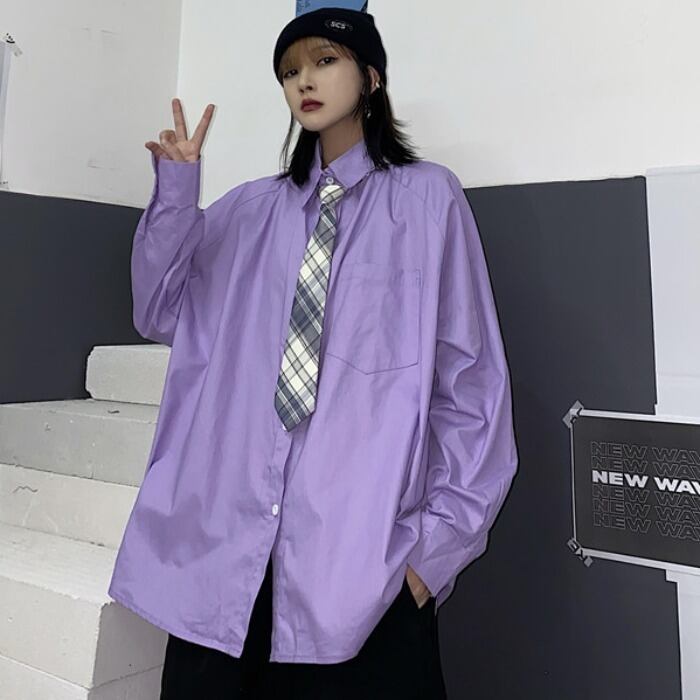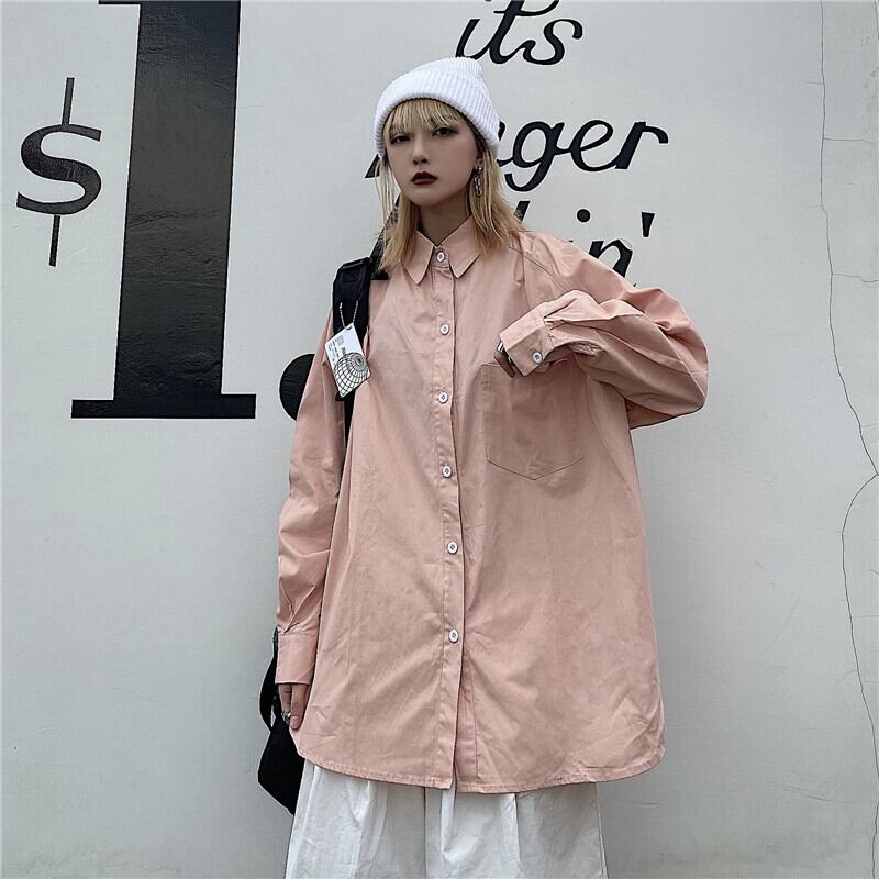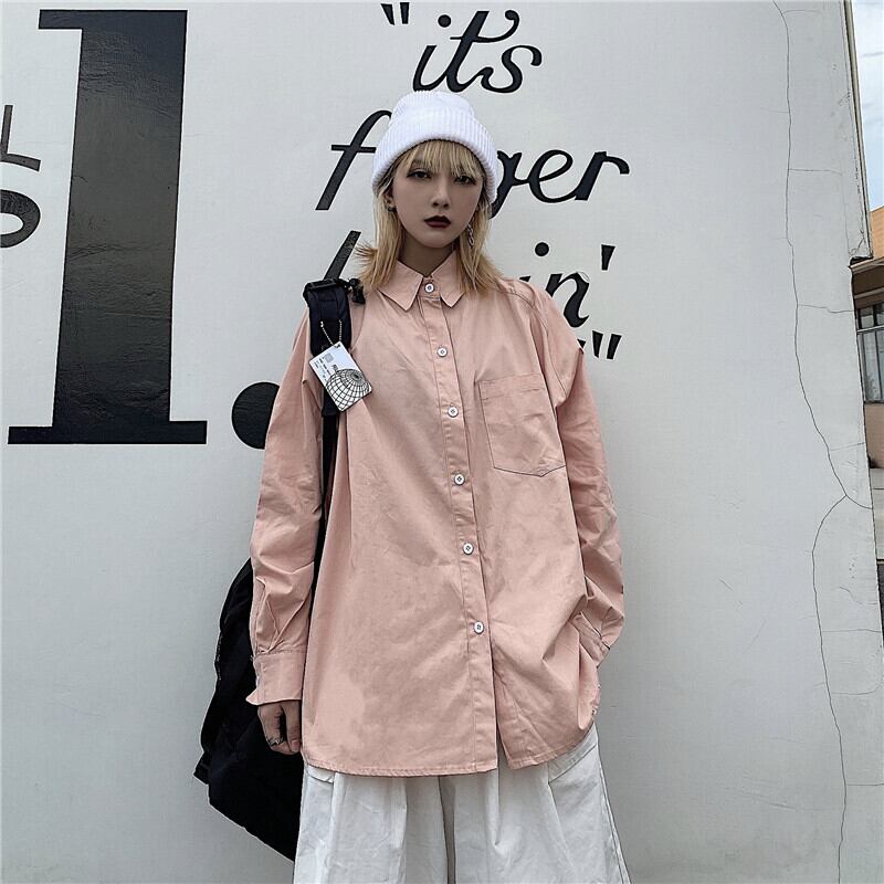 秋物ソリッド カラーシャツ レディース韓国ファッションNEWルーズカジュアル ロング オータム ソリッドカラー スタイル 長袖 コーデ モノクロ Studio96488278723 | pLegLad Studios