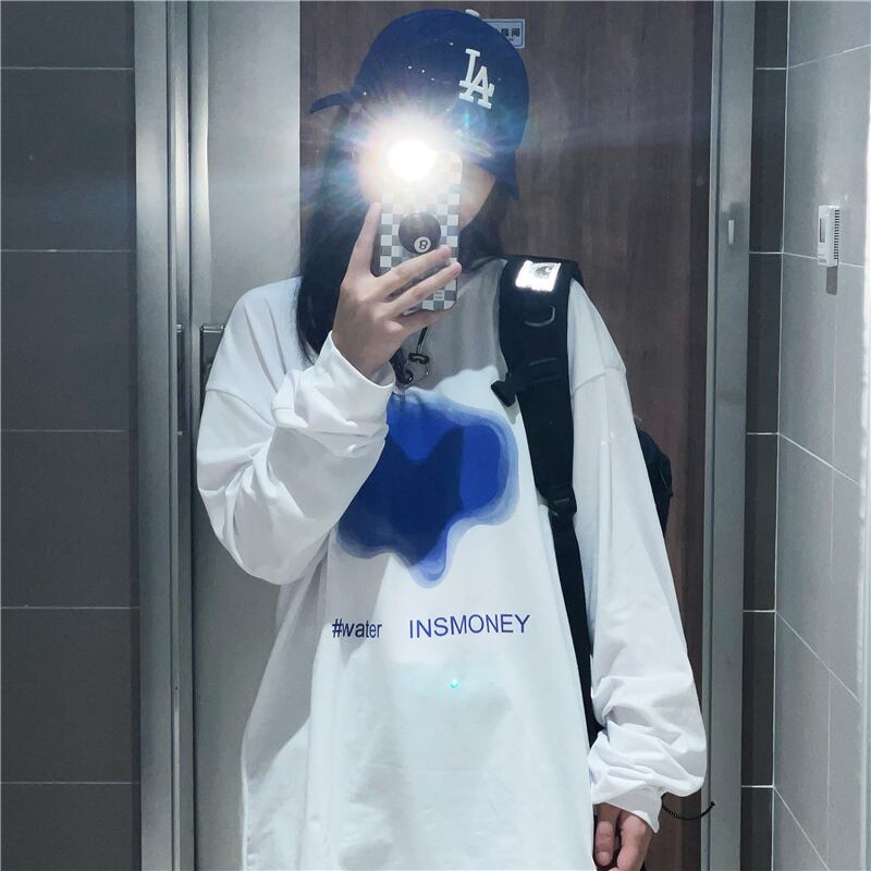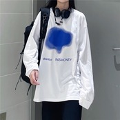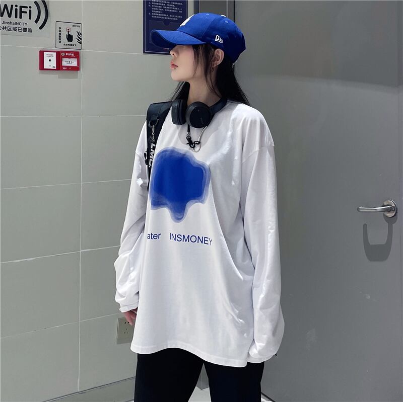 シャツ トップス レディース秋物韓国ファッションNEWスタンダードブループリントルーズTシャツ ロング レトロ オータム 長袖 Studios65589178257 | pLegLad Studios