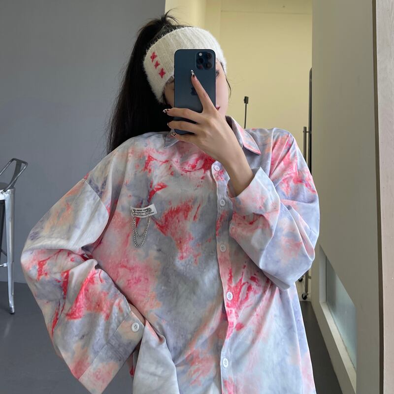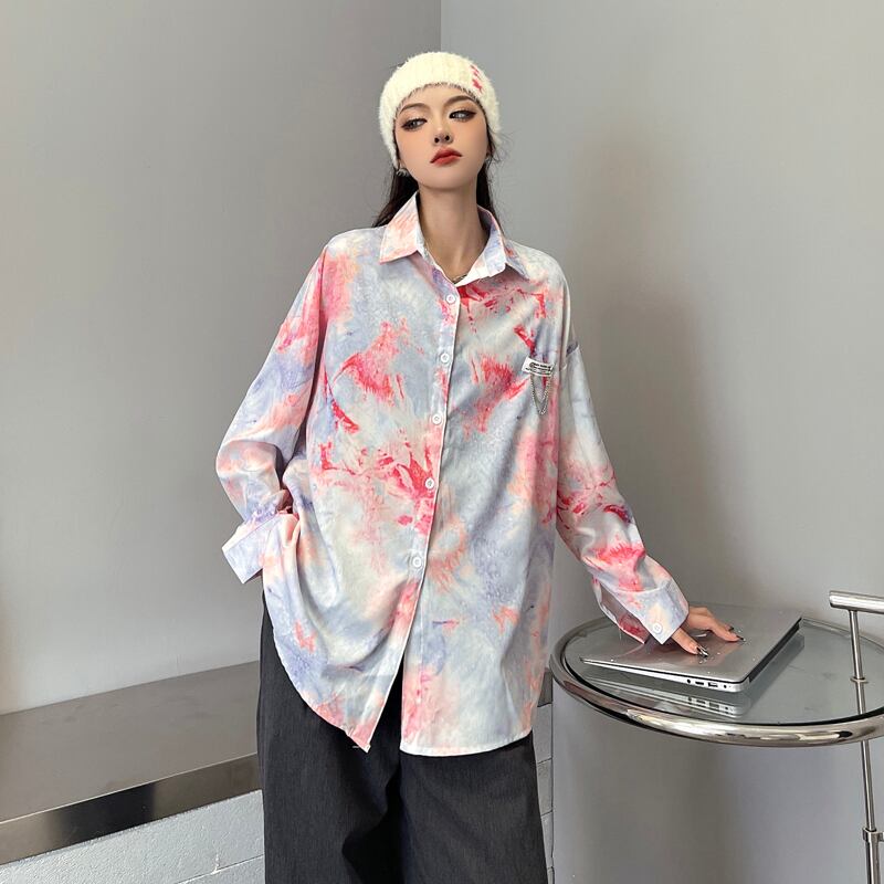 秋物韓国ファッションNEWスタンダードプリントカジュアルルーズシャツ トップス レディース ロング レトロ オータム スタイル 長袖 Studios7596195148 | pLegLad Studios