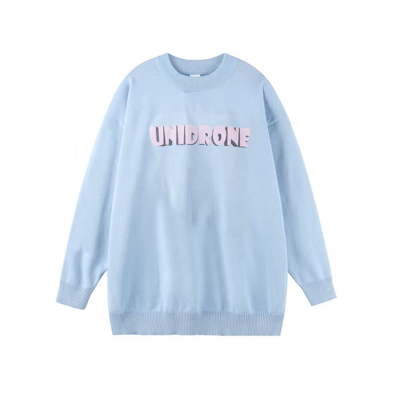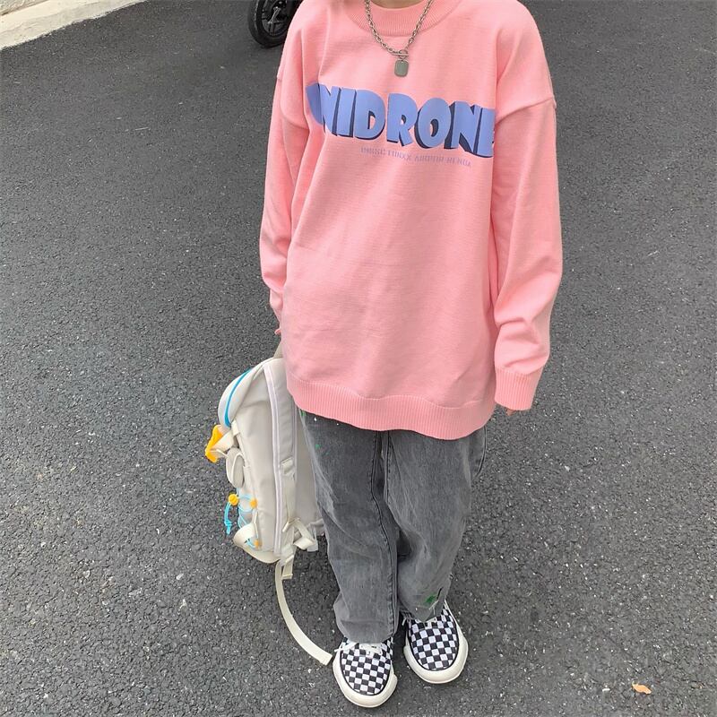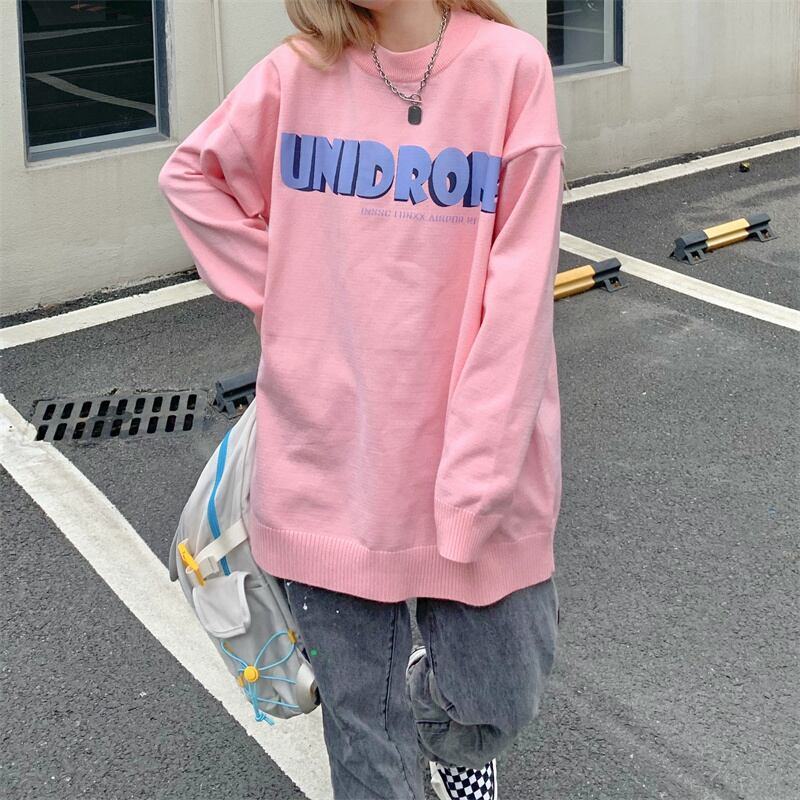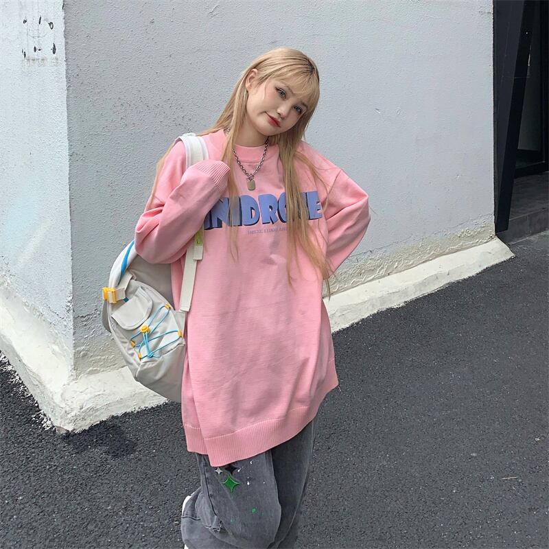 ラウンドネックプルオーバー セーター レディース秋物韓国ファッションNEWルーズトップス ロング オータム Oネック 長袖 コーデ モノクロ Studio50956998706 | pLegLad Studios