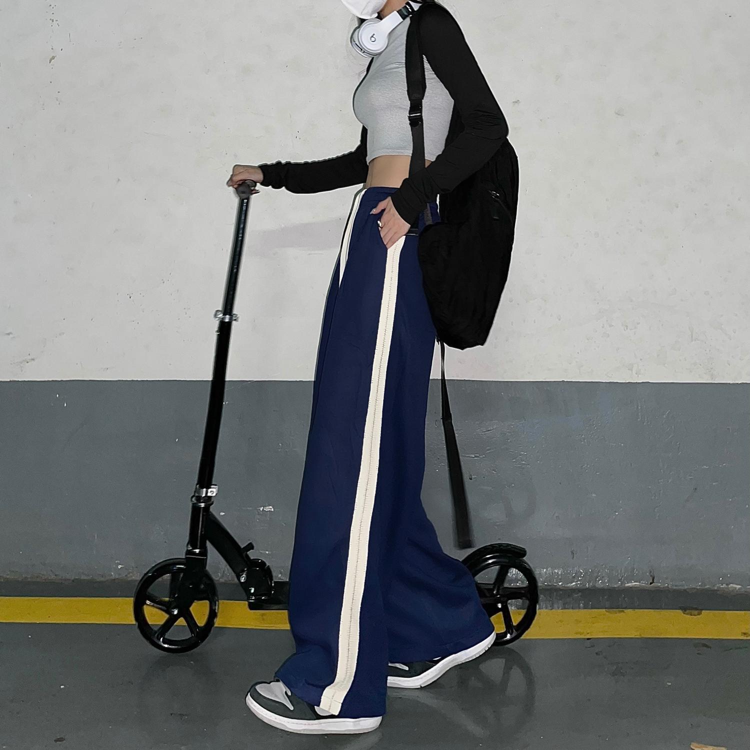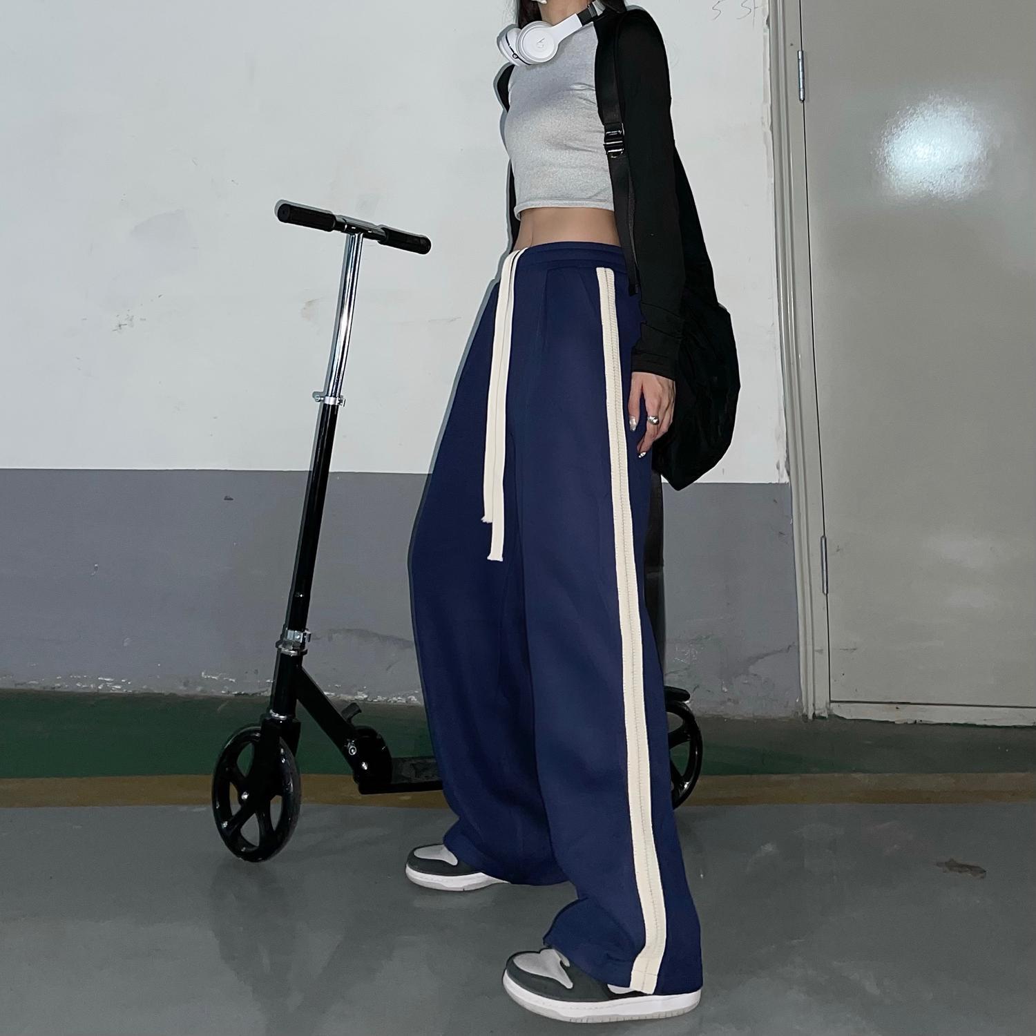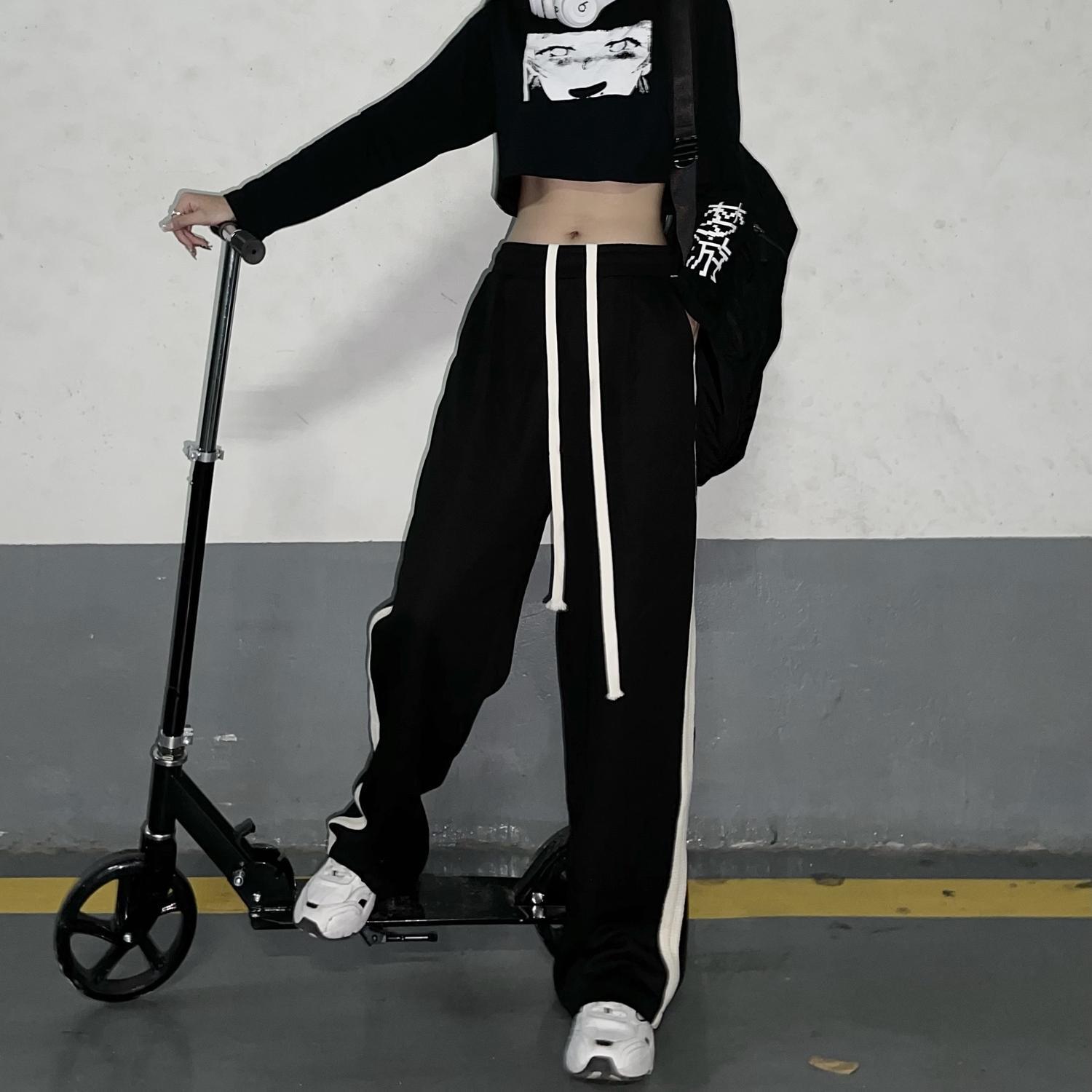 スタイルパンツ 秋物韓国ファッションカジュアルルーズハイウェストウェストワイドレッグ ストリート 原宿 オータム ワイドパンツ ステッチ ウエスト コーデ モノクロ Studio20689210259 | pLegLad Studios