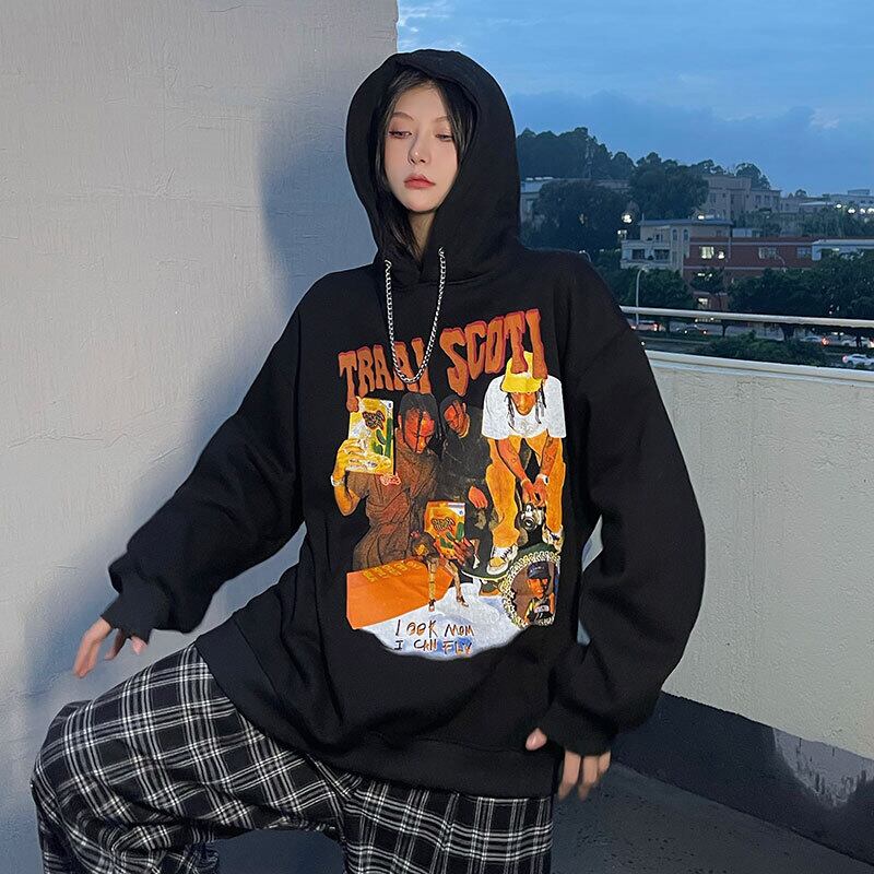 秋物ウィンター韓国ファッションNEWスタイルプリントルーズフードプルオーバー セーター ジャケット レディース ストリート 原宿 オータム 冬物 ヨーロピアン Studios51470301711 | pLegLad Studios