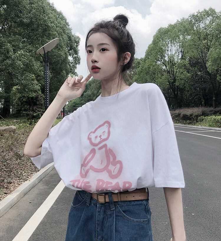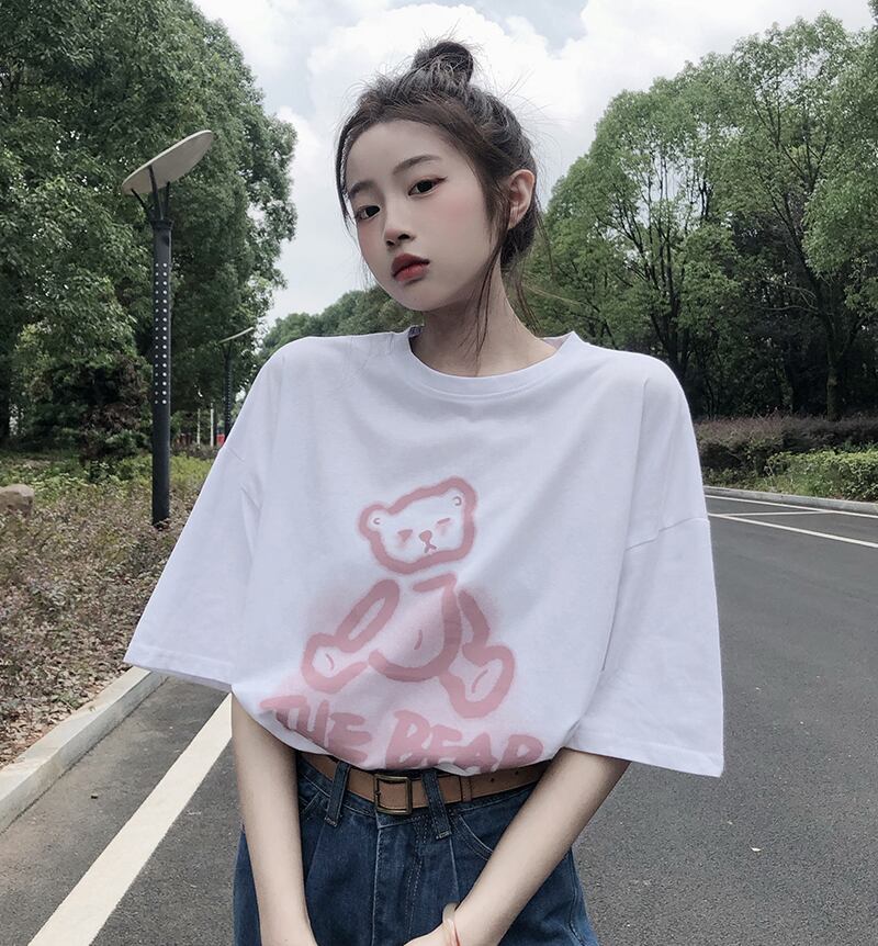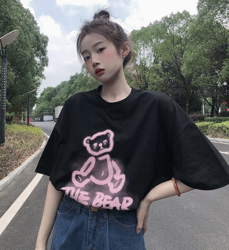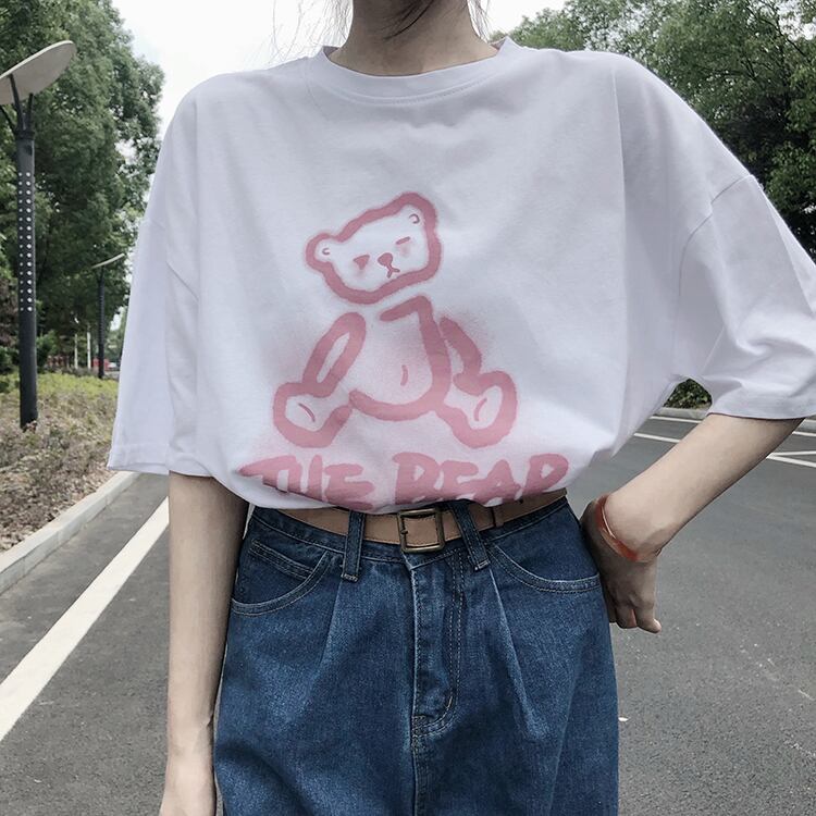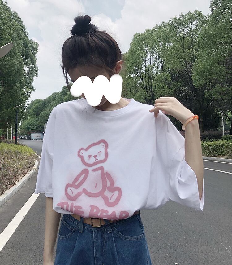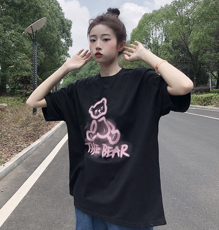 色:ホワイトピンクピンクのクマのTシャツ,ブラックピンクピンクベアTシャツ