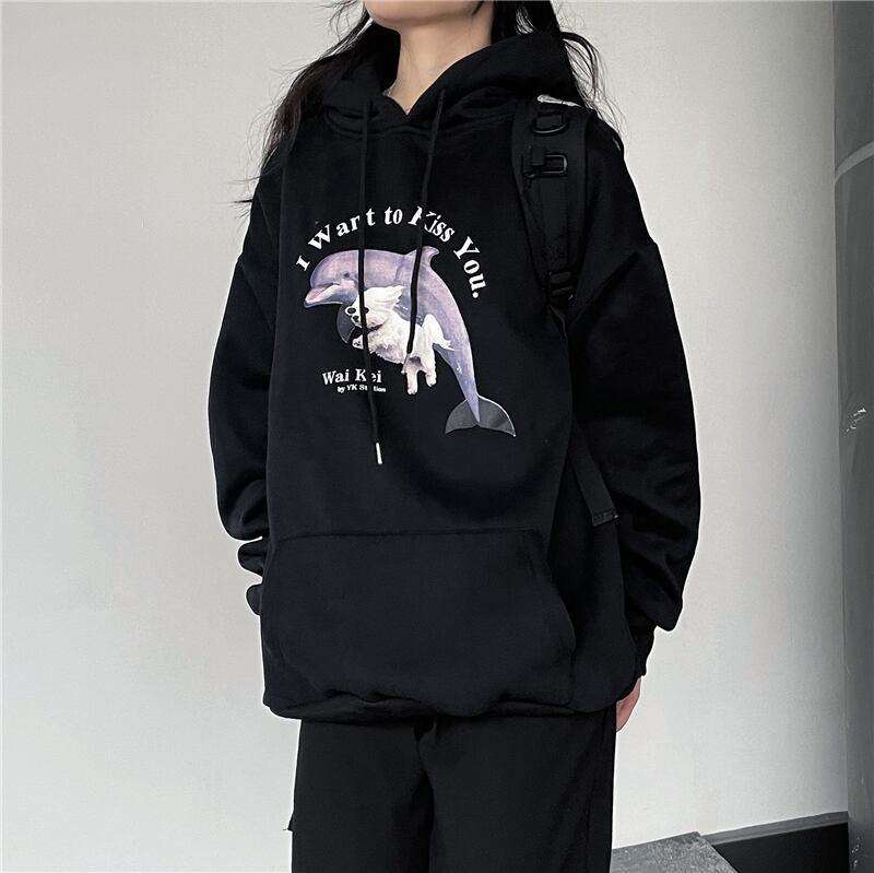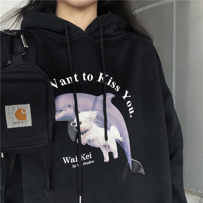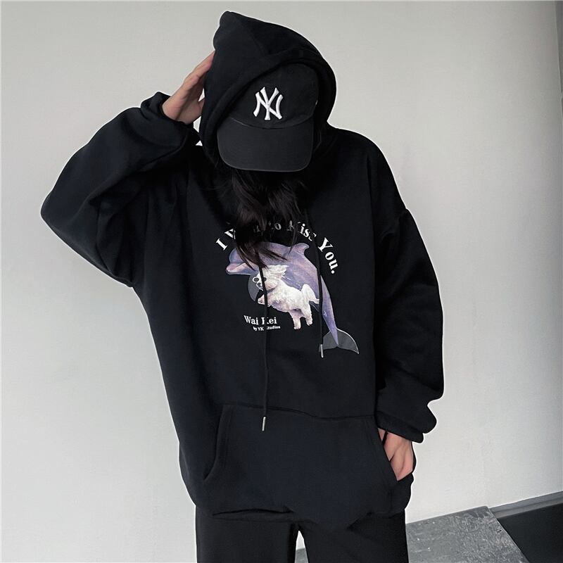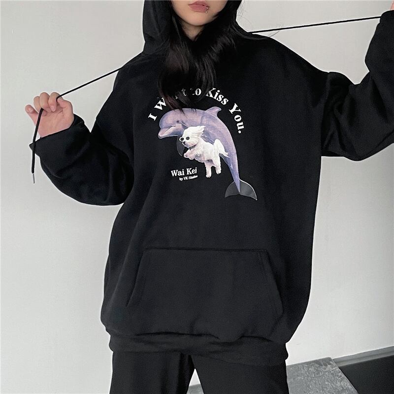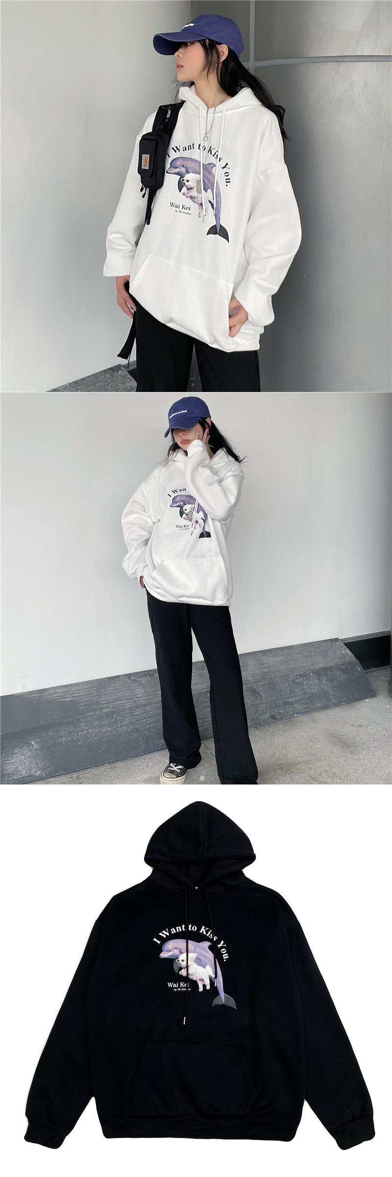 プリント柄フードセーター レディース秋物韓国ファッションNEW厚みルーズプルオーバー トップス オータム スタイル コーデ モノクロ Studio31565259951 | pLegLad Studios