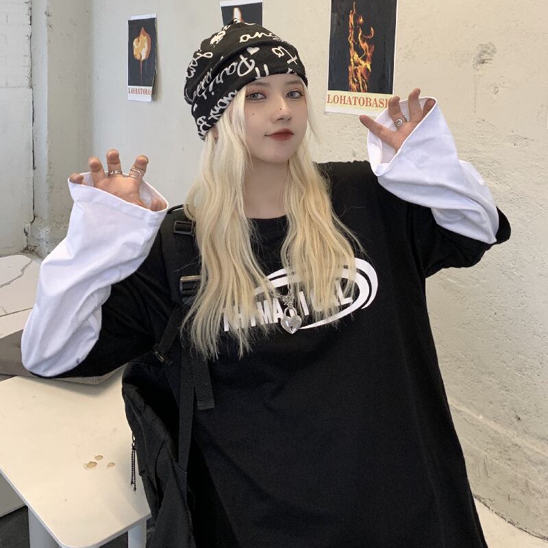 秋物韓国ファッションNEWプリントツーピース ルーズゆったりシャツ Tシャツトップス メンズレディース ロング オータム ステッチ スタイル 長袖 Studios81461055260 | pLegLad Studios