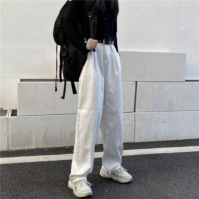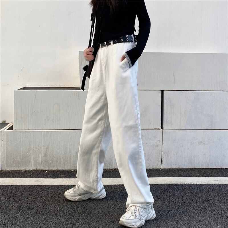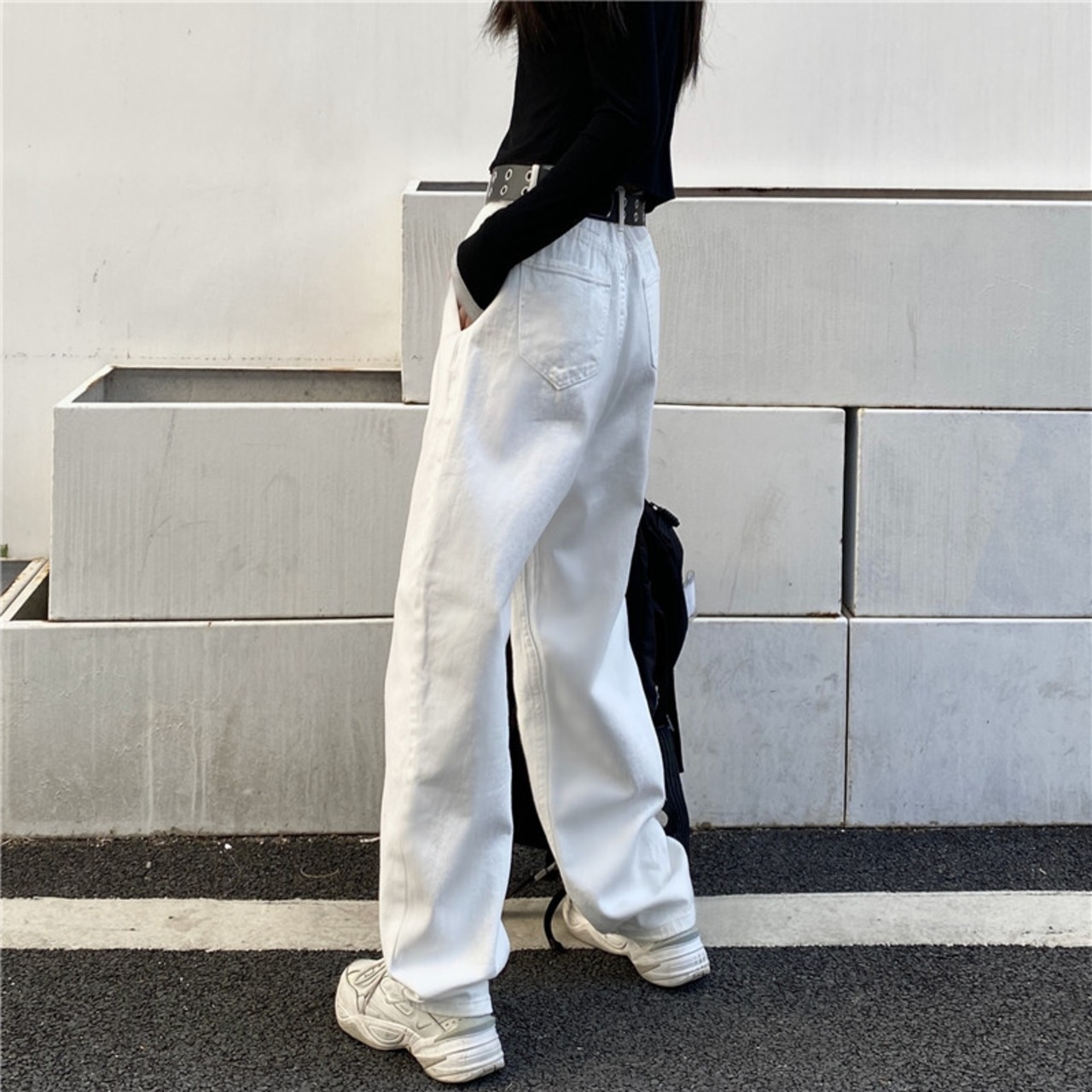 ホワイトジーンズ 秋物韓国ファッションNEW薄手パンツ ハイウェストウェストルーズ オータム スタイル ウエスト コーデ モノクロ Studio47394639478 | pLegLad Studios