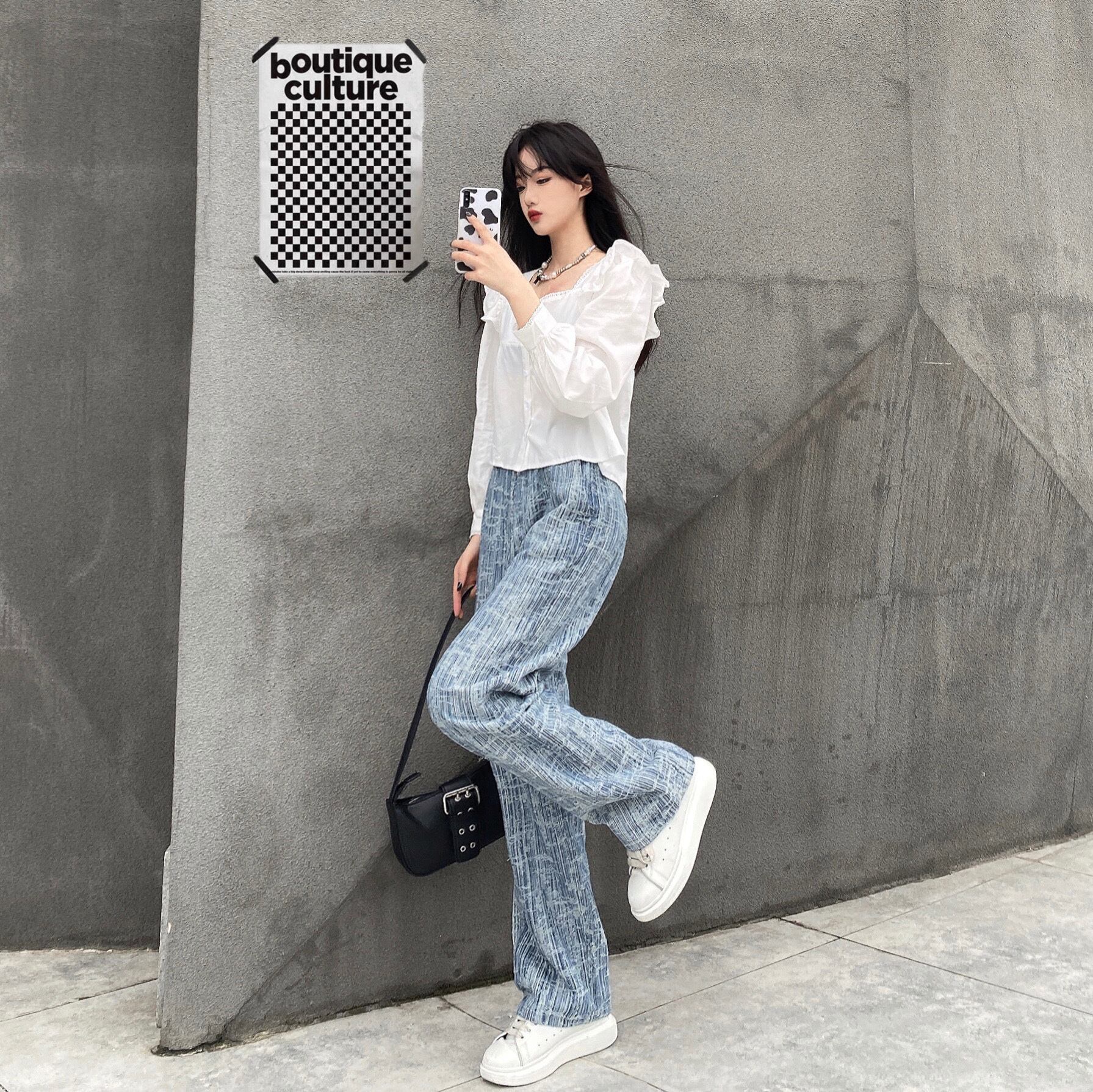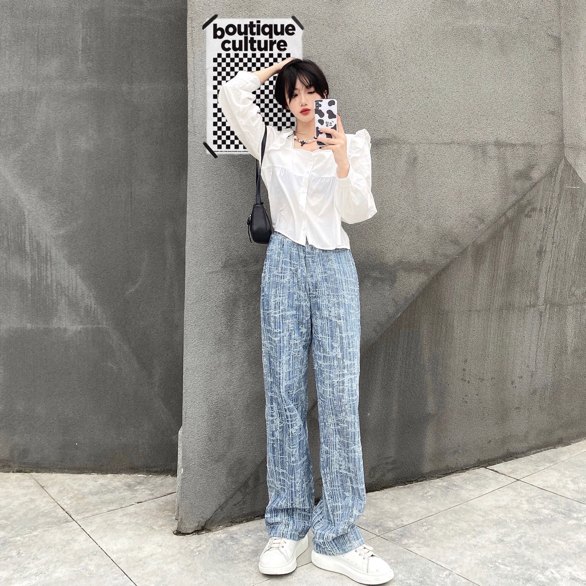 ジーンズ 秋物韓国ファッションNEWスタンダードウェストルーズパンツ レトロ ストリート オータム ワイドレッグ ワイドパンツ ウエスト Studios52851320438 | pLegLad Studios