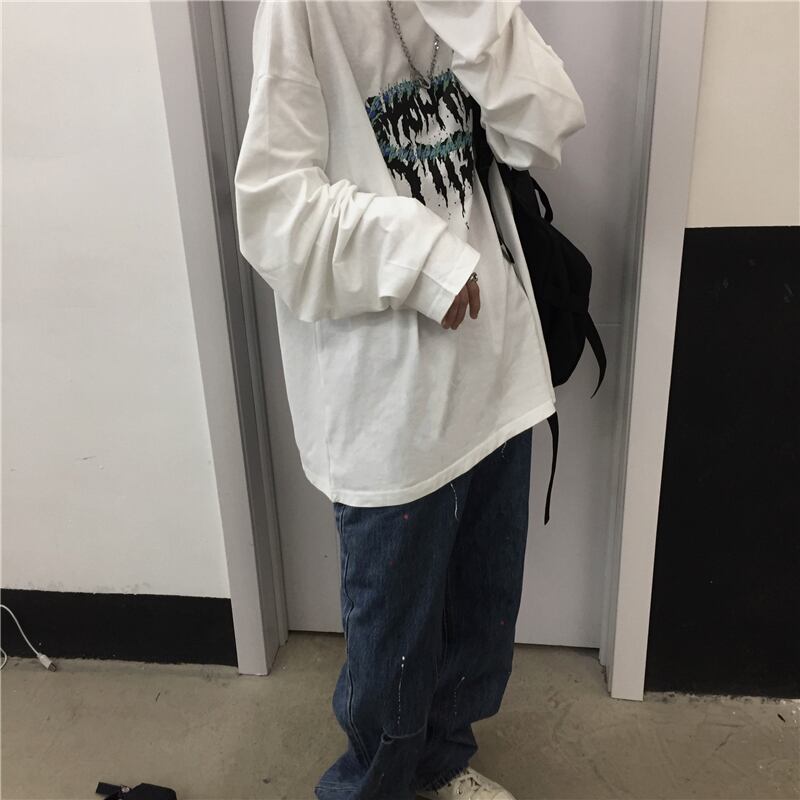 シャツ トップス レディース秋物韓国ファッションNEWスタンダードダークプリントルーズカジュアルTシャツ ロング レトロ ストリート オータム スタイル 長袖 Studios73288212845 | pLegLad Studios