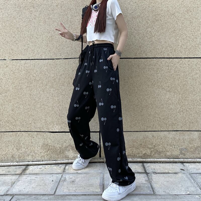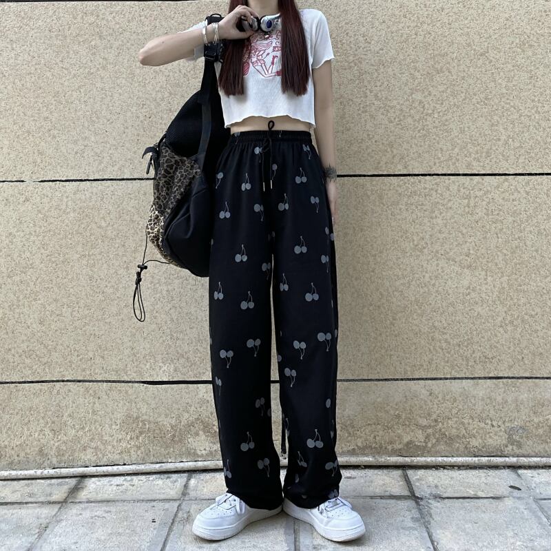 カジュアルパンツ レディース夏服韓国ファッションNEWスタンダードプリント柄ルーズハイウェストウェストワイドレッグ レトロ ストリート 夏物 ワイドパンツ スタイル ウエスト Studios79416474798 | pLegLad Studios