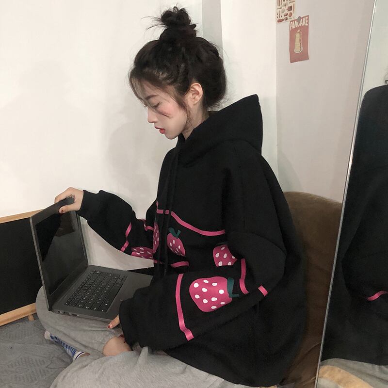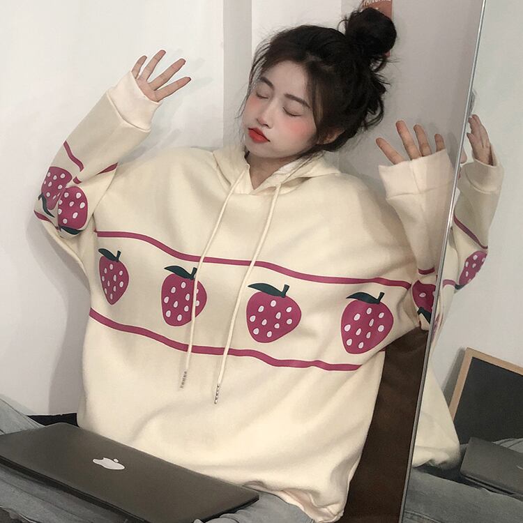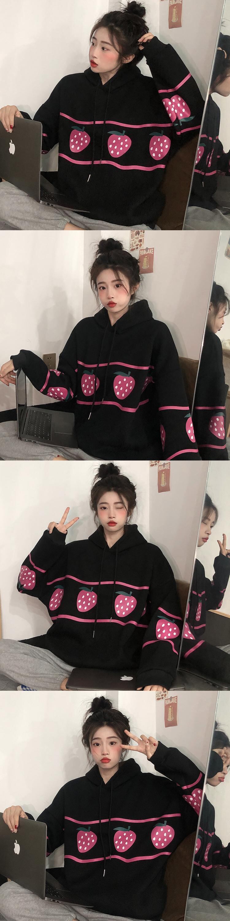 色:クリーミーなアプリコットストロベリースウェットシャツ,ブラックストロベリーセーター