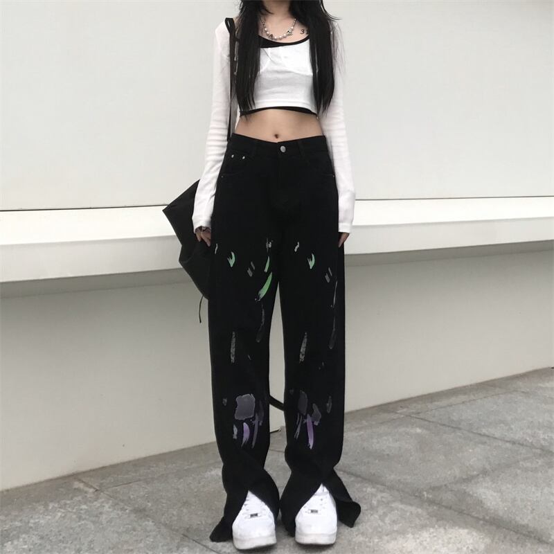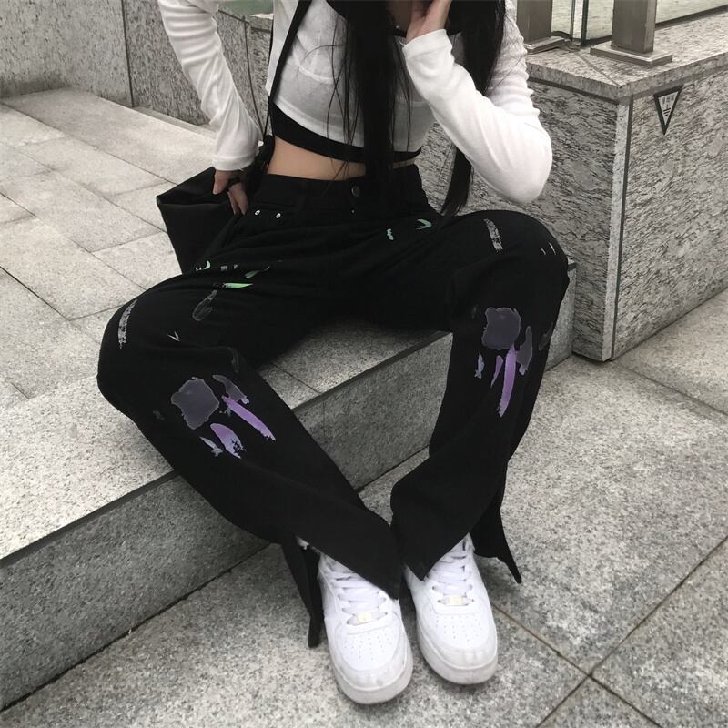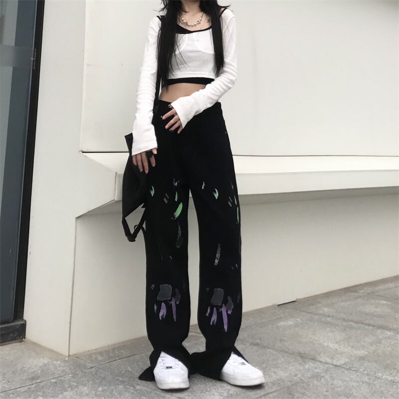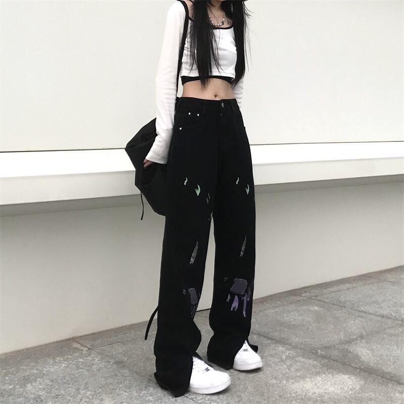 ジーンズ 秋物スタイル韓国ファッションプリント柄カジュアルパンツ ハイウェストウェスト オータム ボーイズ ウエスト コーデ モノクロ Studio11135699114 | pLegLad Studios