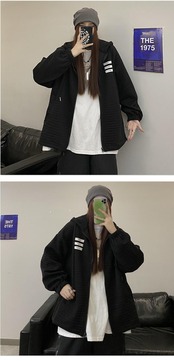秋物カーディガンフードセーター レディース韓国ファッションNEWスタイルルーズカジュアルジャケット 原宿 オータム コーデ モノクロ Studio48358200071 | pLegLad Studios