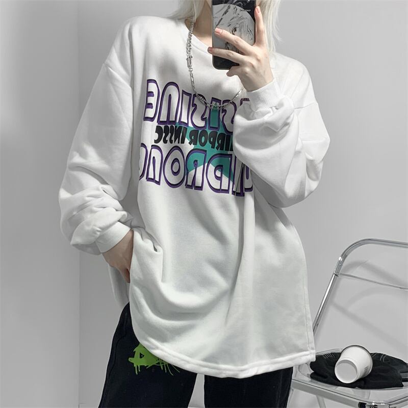 秋物ウィンター韓国ファッションNEWプリントルーズカジュアル薄手ラウンドネックセーター レディース ストリート オータム 冬物 Oネック スタイル Studios51808782653 | pLegLad Studios