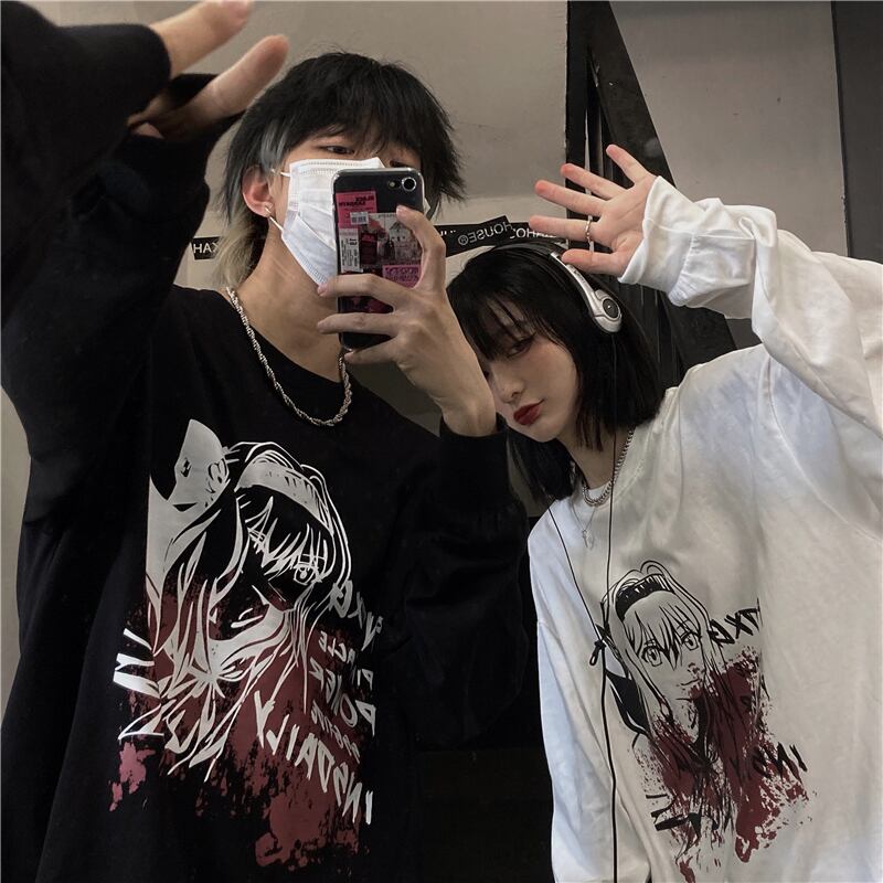 シャツ トップス レディース秋物韓国ファッションNEWスタンダードプリントルーズTシャツ ロング レトロ ストリート オータム スタイル 長袖 Studios55891435131 | pLegLad Studios