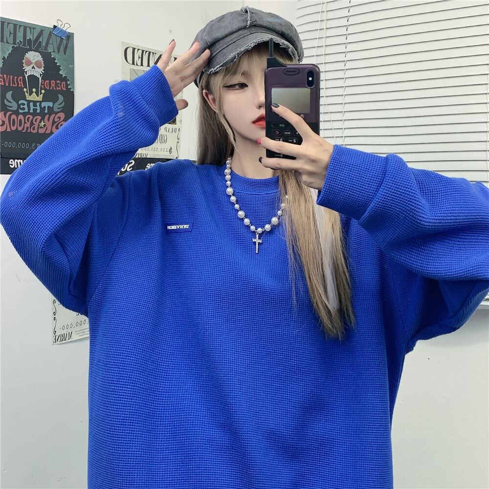 スタンダードブルールーズプルオーバー セーター レディース秋物韓国ファッションNEWソリッド カラー薄手トップス レトロ オータム ソリッドカラー スタイル コーデ モノクロ Studio8429612080 | pLegLad Studios