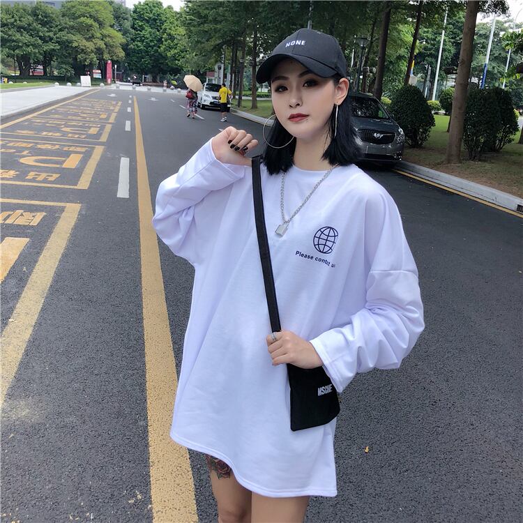 ゆったりシャツ トップス 秋物韓国ファッションNEWスタイルプリントルーズラウンドネックTシャツ ロング オータム Oネック 長袖 Studios6622438428 | pLegLad Studios