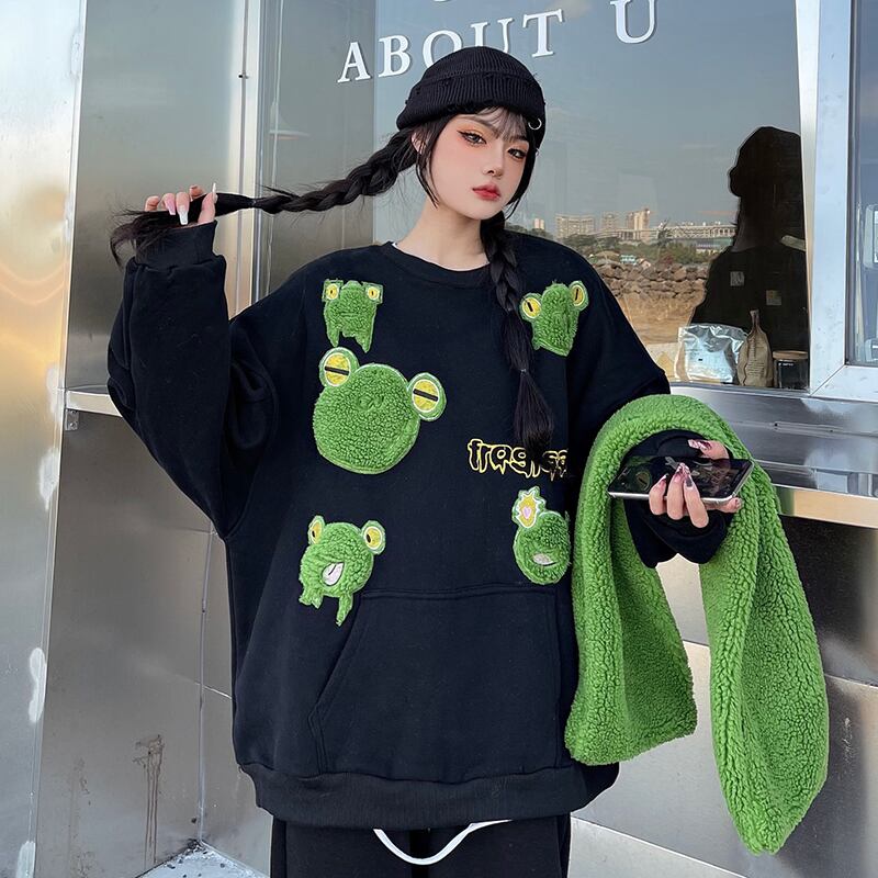ウィンター韓国ファッションNEW刺繍厚みラウンドネックルーズセーター ジャケット レディース ロング 冬物 Oネック スタイル 長袖 Studios23672403083 | pLegLad Studios