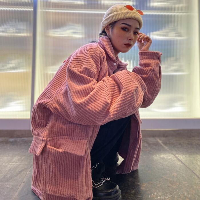 秋物NEWスタイルスタンダードコーデュロイ薄手ルーズカジュアルトップス コート レディース ロング レトロ 原宿 オータム ボーイズ 長袖 Studios52591263714 | pLegLad Studios
