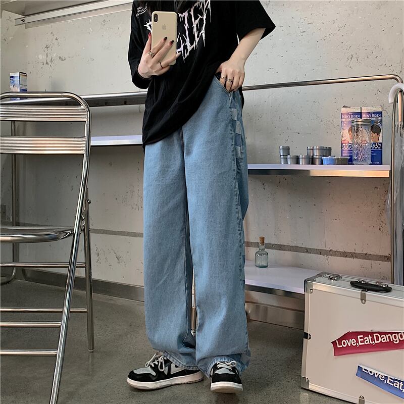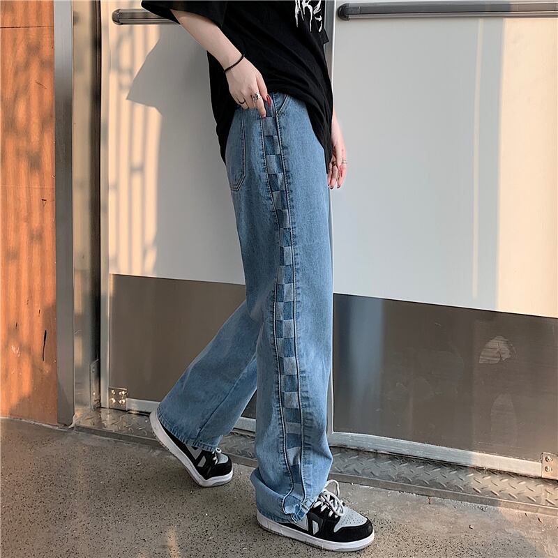 ジーンズ レディース韓国ファッションNEWスタンダード格子柄ルーズ薄手ハイウェストウェストワイドレッグ レトロ ストリート ワイドパンツ ステッチ スタイル ウエスト Studios30494515119 | pLegLad Studios