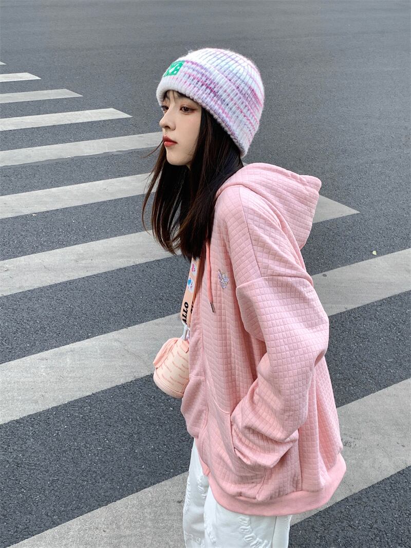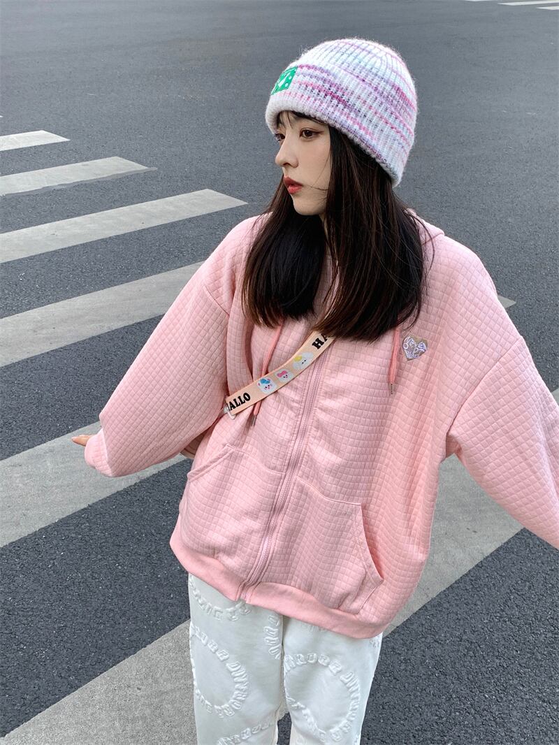 フードカーディガンセーター 秋物ウィンター韓国ファッションNEWルーズジッパートップス ロング オータム 冬物 スタイル 長袖 Studios46540697509 | pLegLad Studios