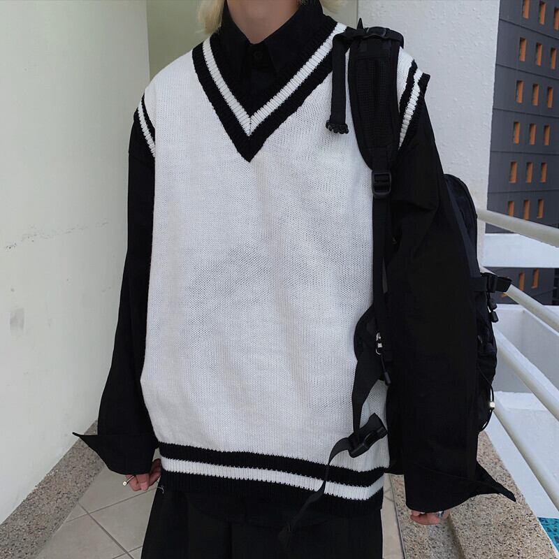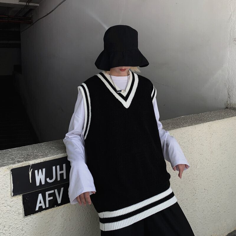 セーター レディース秋物ウィンター韓国ファッションNEWスタンダードルーズVネックノースリーブニットトップス レトロ オータム 冬物 スタイル Studios28001323341 | pLegLad Studios