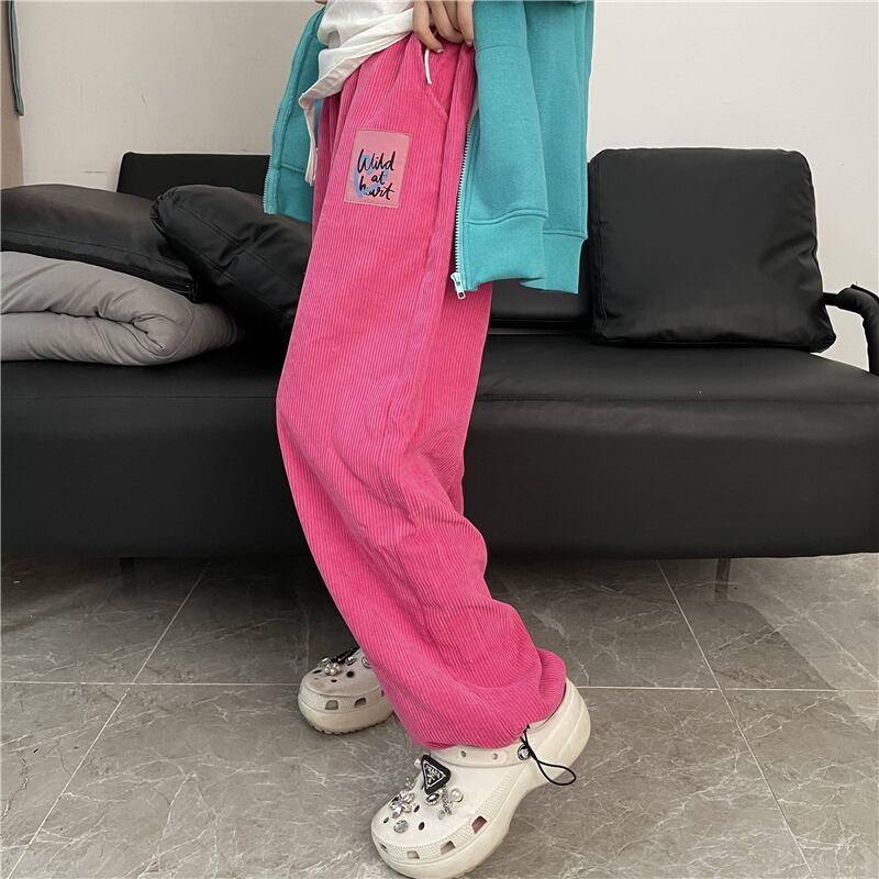 コーデュロイカジュアルパンツ 秋物韓国ファッションNEWスタンダードレッドルーズハイウェストウェストワイドレッグ レトロ オータム ワイドパンツ スタイル ウエスト Studios84836875051 | pLegLad Studios