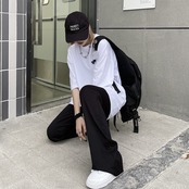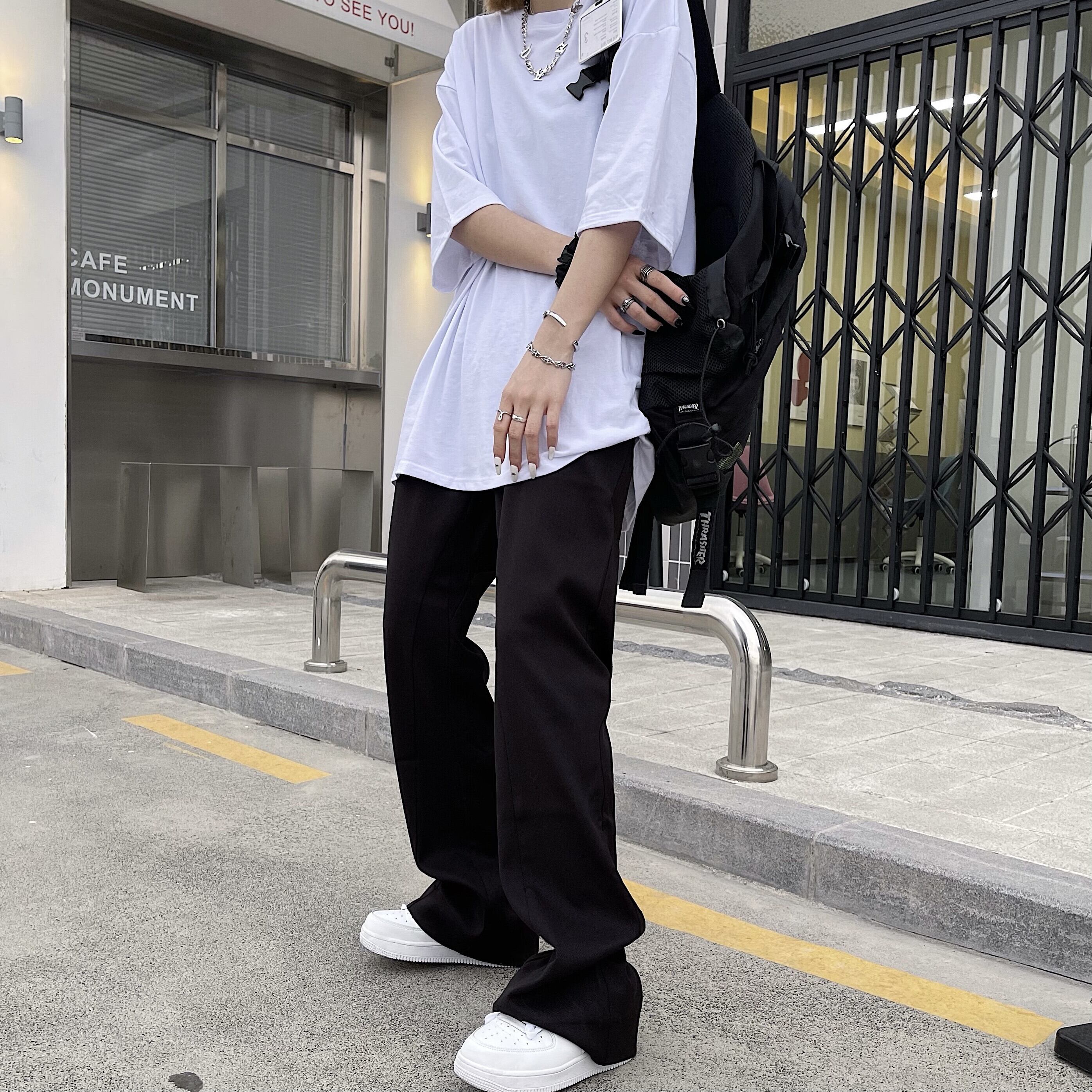 ブラックパンツ 秋物韓国ファッションNEW薄手ハイウェストウェストルーズワイドレッグカジュアル オータム ワイドパンツ スタイル ウエスト Studios58008169825 | pLegLad Studios