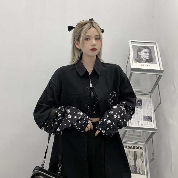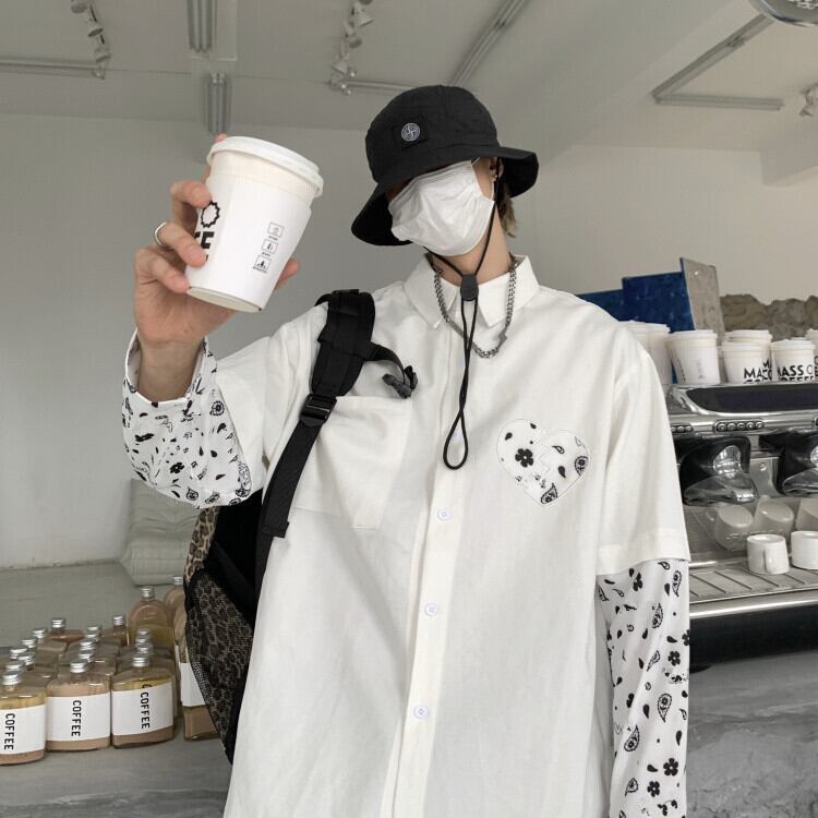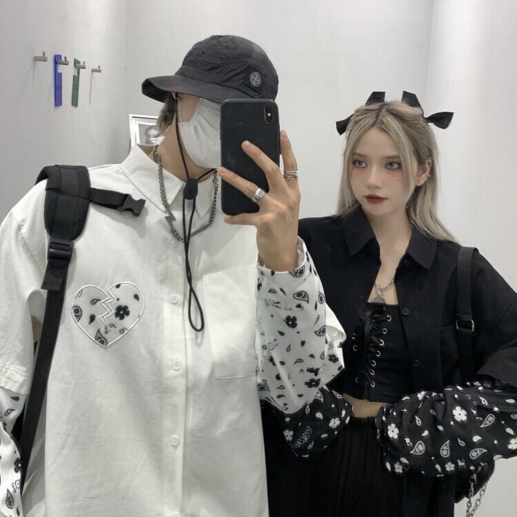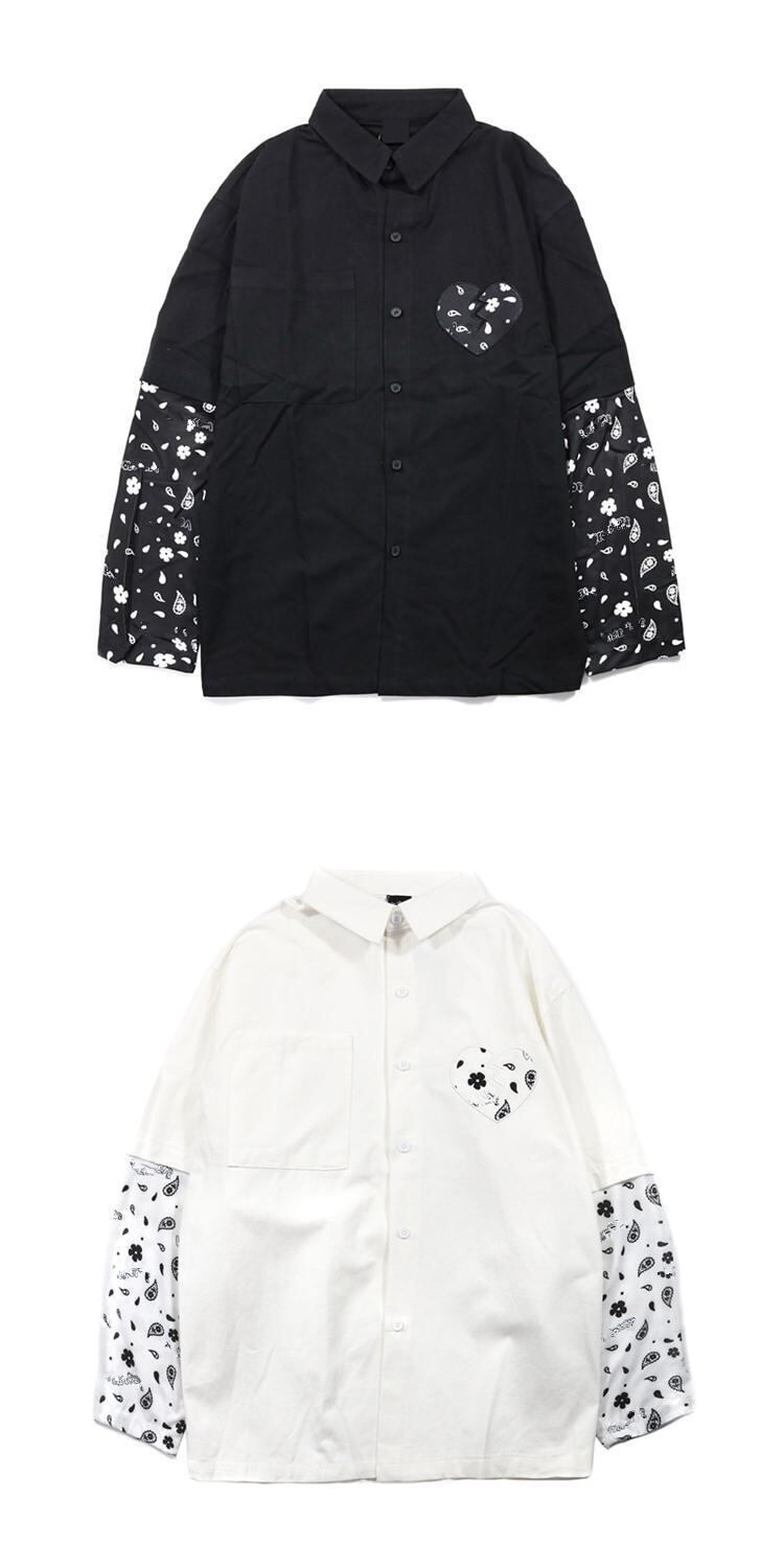秋物韓国ファッションNEWスタイルFlowerデザイン カジュアルルーズシャツ メンズレディース ロング オータム フラワーデザイン ステッチ 長袖 Studios59463279749 | pLegLad Studios